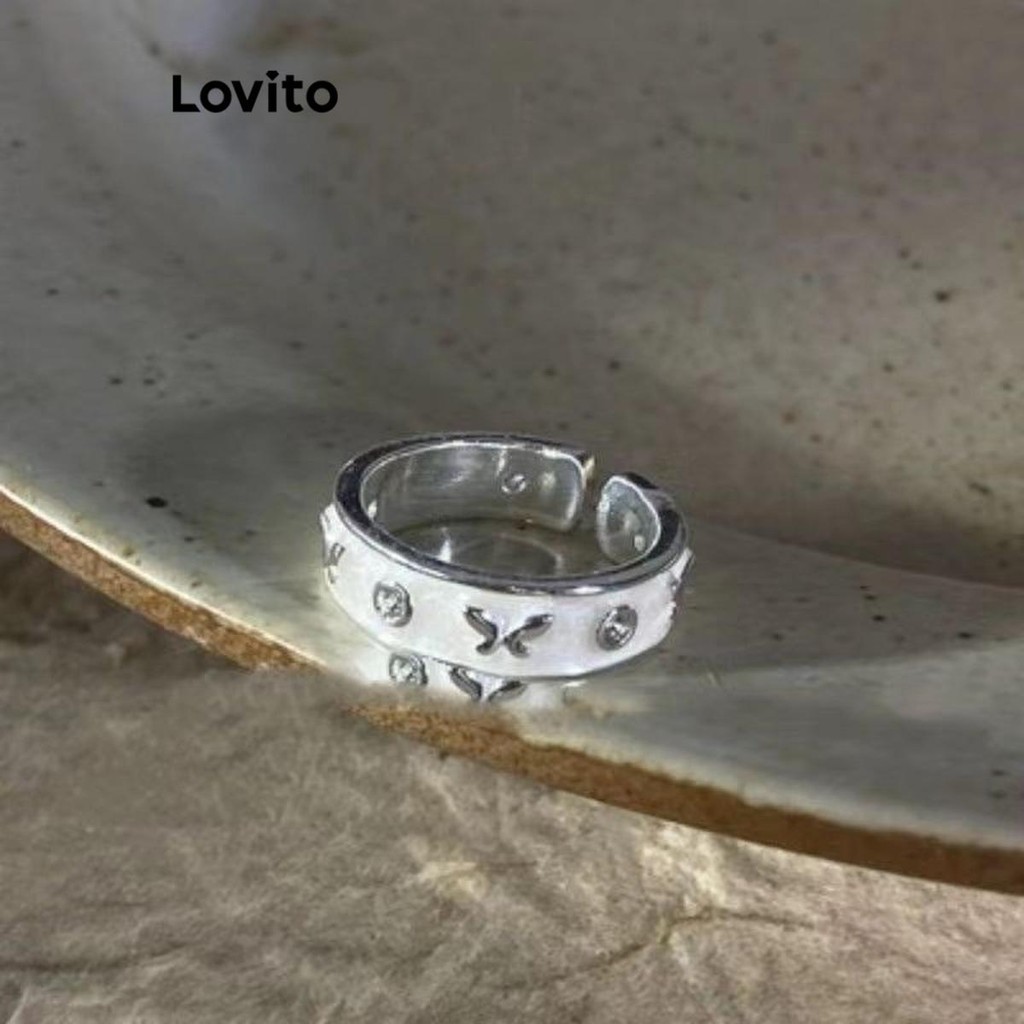 Lovito Nhẫn kim loại kiểu dáng đơn giản cổ điển hoài cổ đính đá cho nữ lfa13887