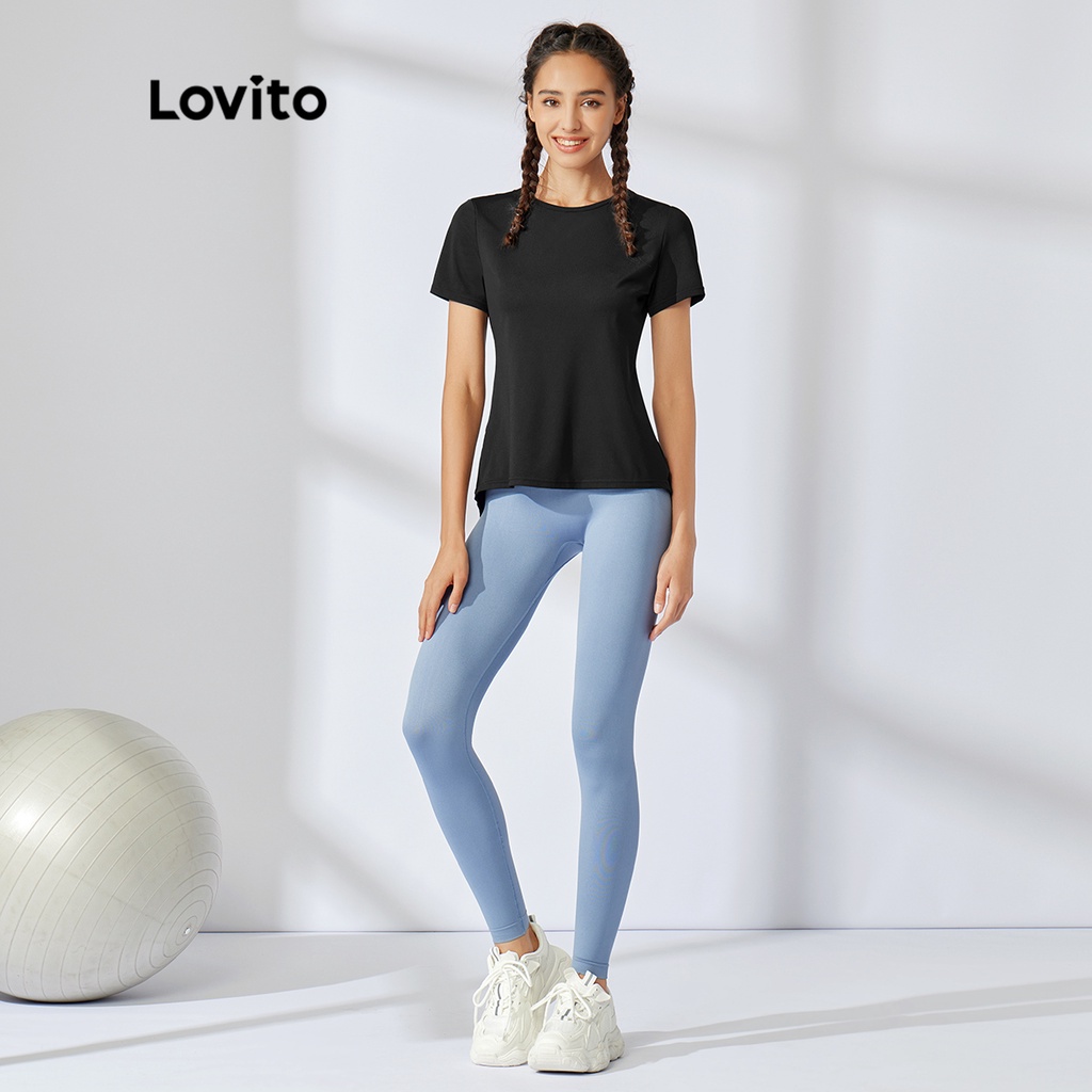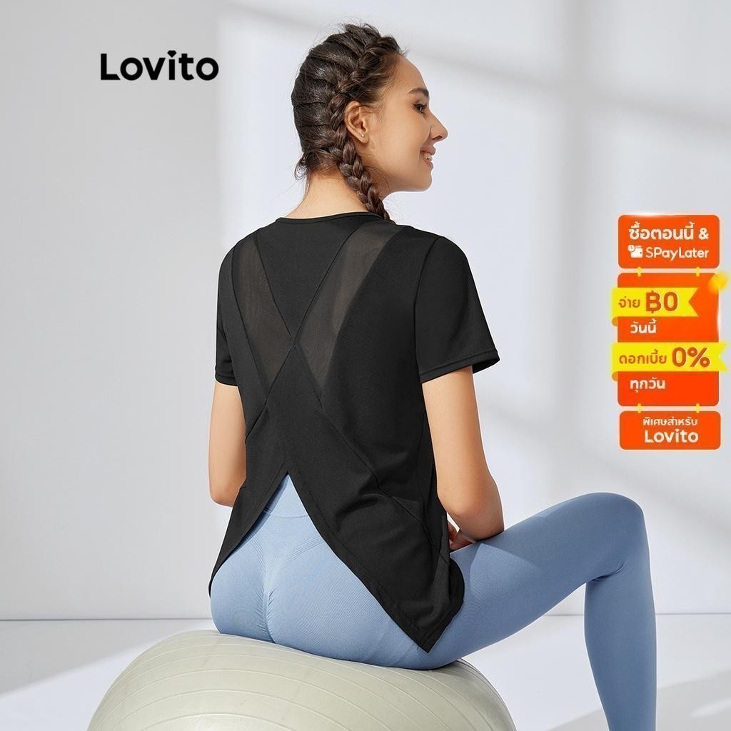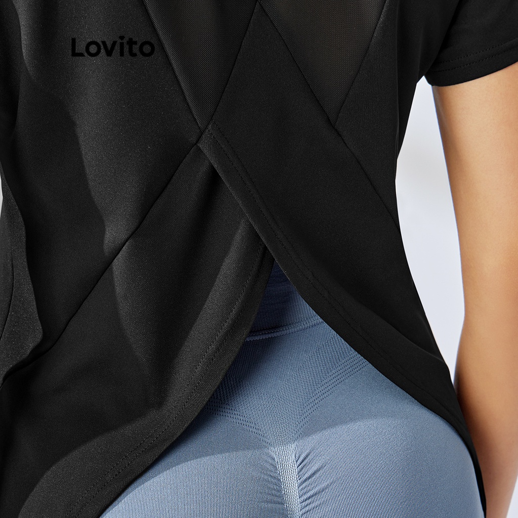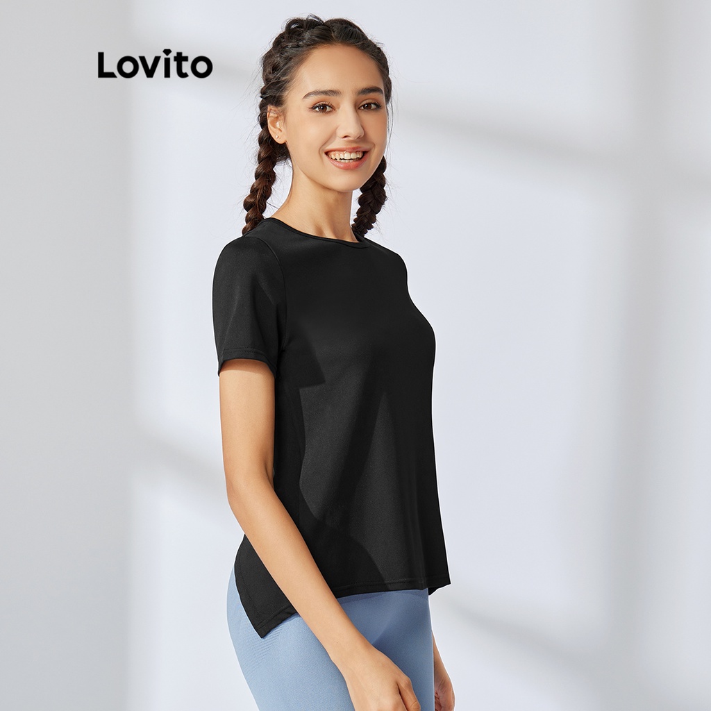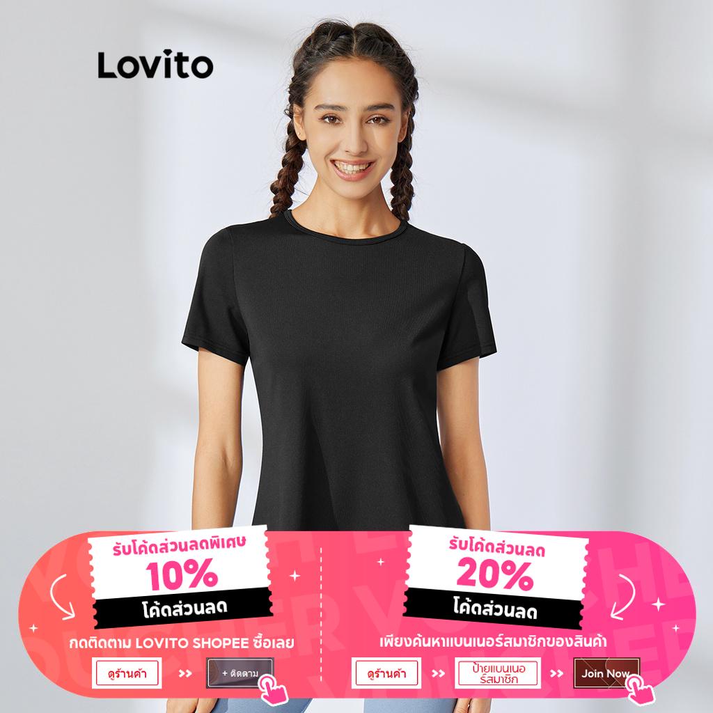 Lovito Áo thể thao cắt ngắn không ma sát Bộ đồ tập Yoga thể dục cho nữ l34ad012 (Màu Đen)