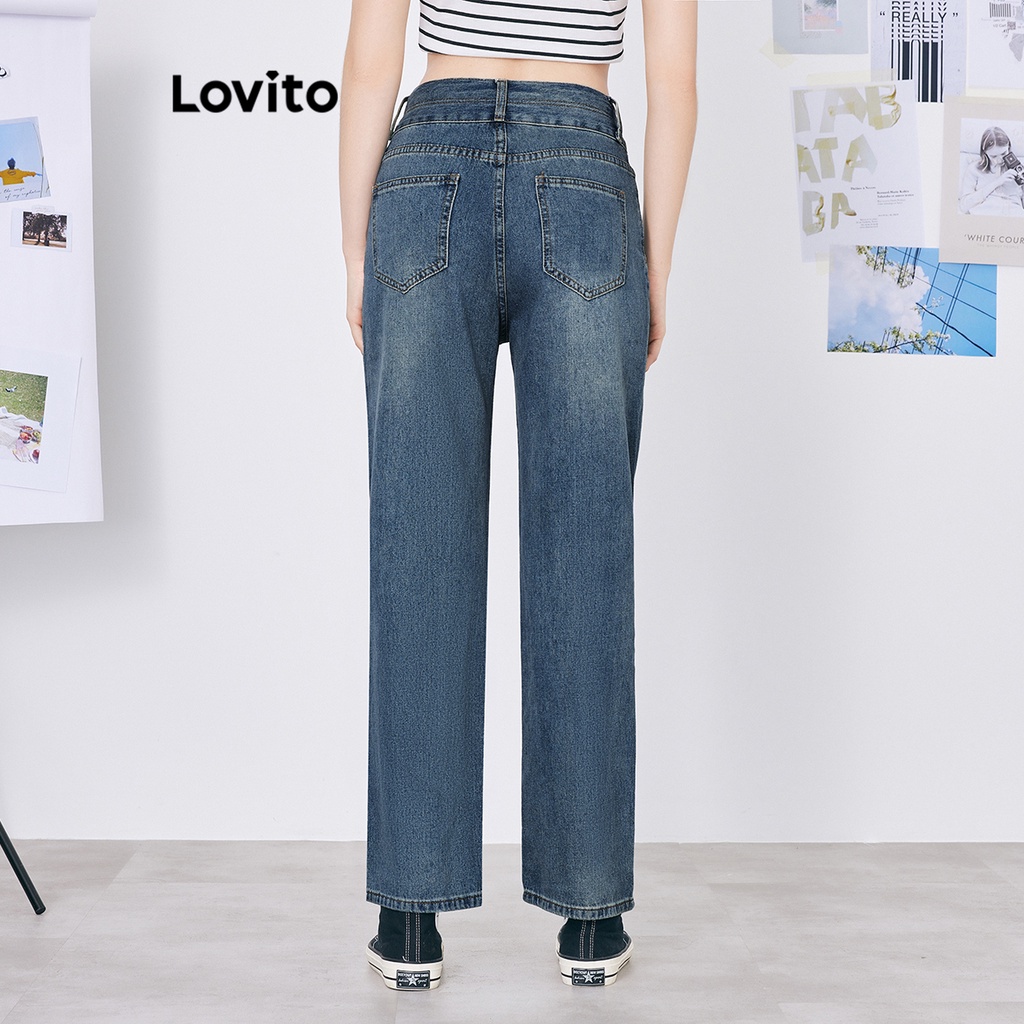 Lovito Quần bò rách lỗ dáng rộng thường ngày màu trơn cho nữ lne17197 (màu xanh dương)