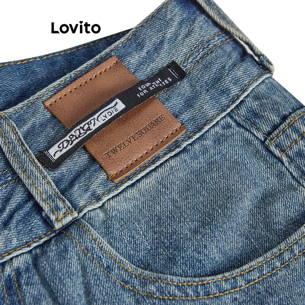 Lovito Quần bò nam đã giặt dáng rộng thường ngày l65ed091 (Xanh nhạt)