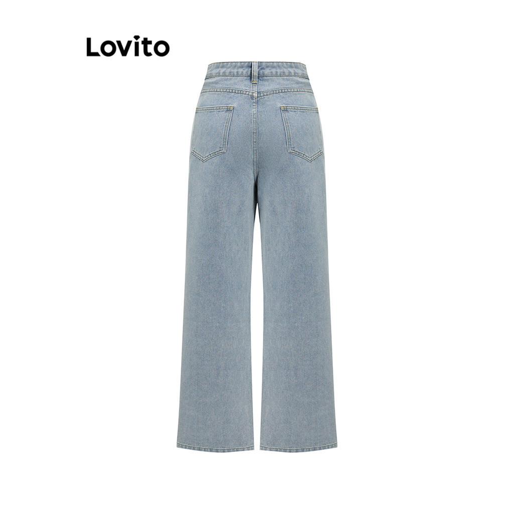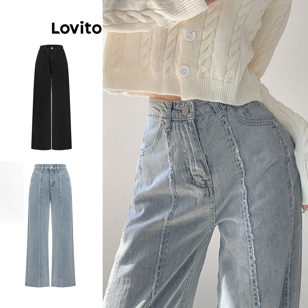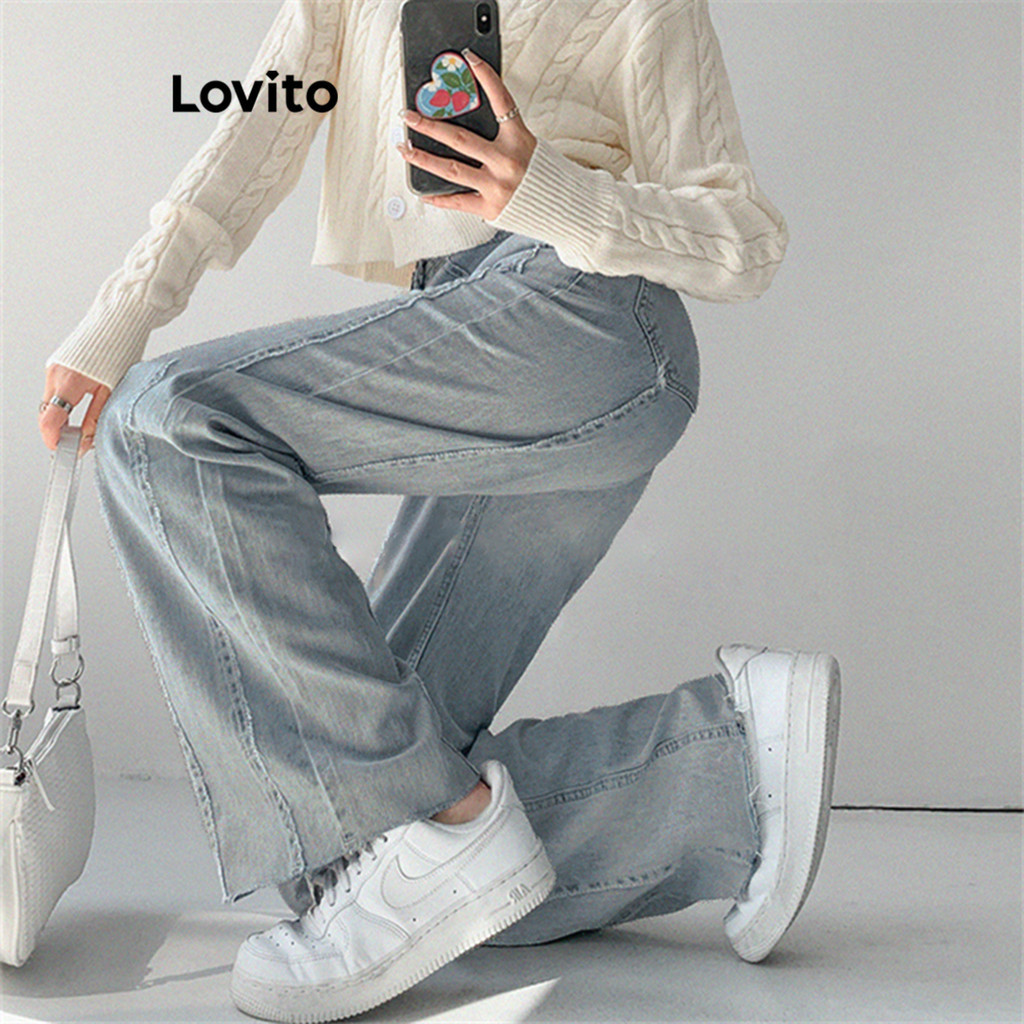 Lovito Quần bò nữ ống rộng cạp cao hình chữ V đơn giản l47ed146 (Nhiều màu)