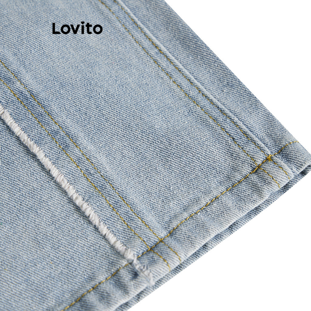 Lovito Quần bò rách lỗ dáng rộng thường ngày màu trơn cho nữ lne17197 (màu xanh dương)