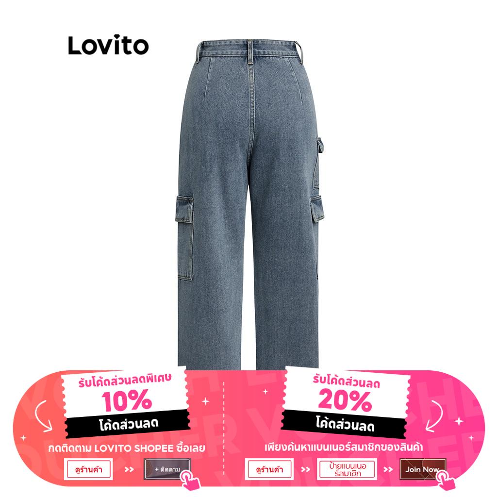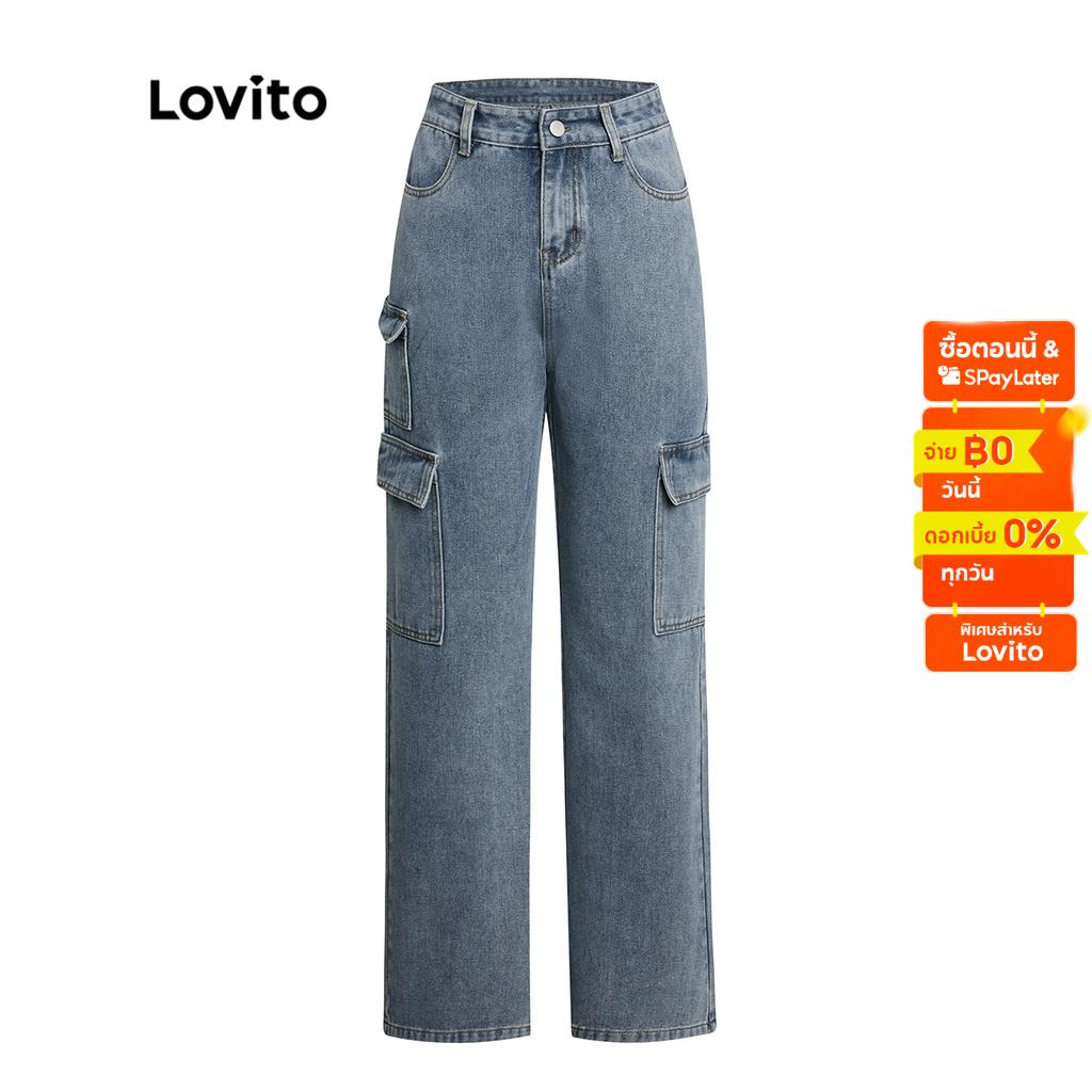 Lovito Quần bò nữ ống rộng cạp cao hình chữ V đơn giản l47ed146 (Nhiều màu)