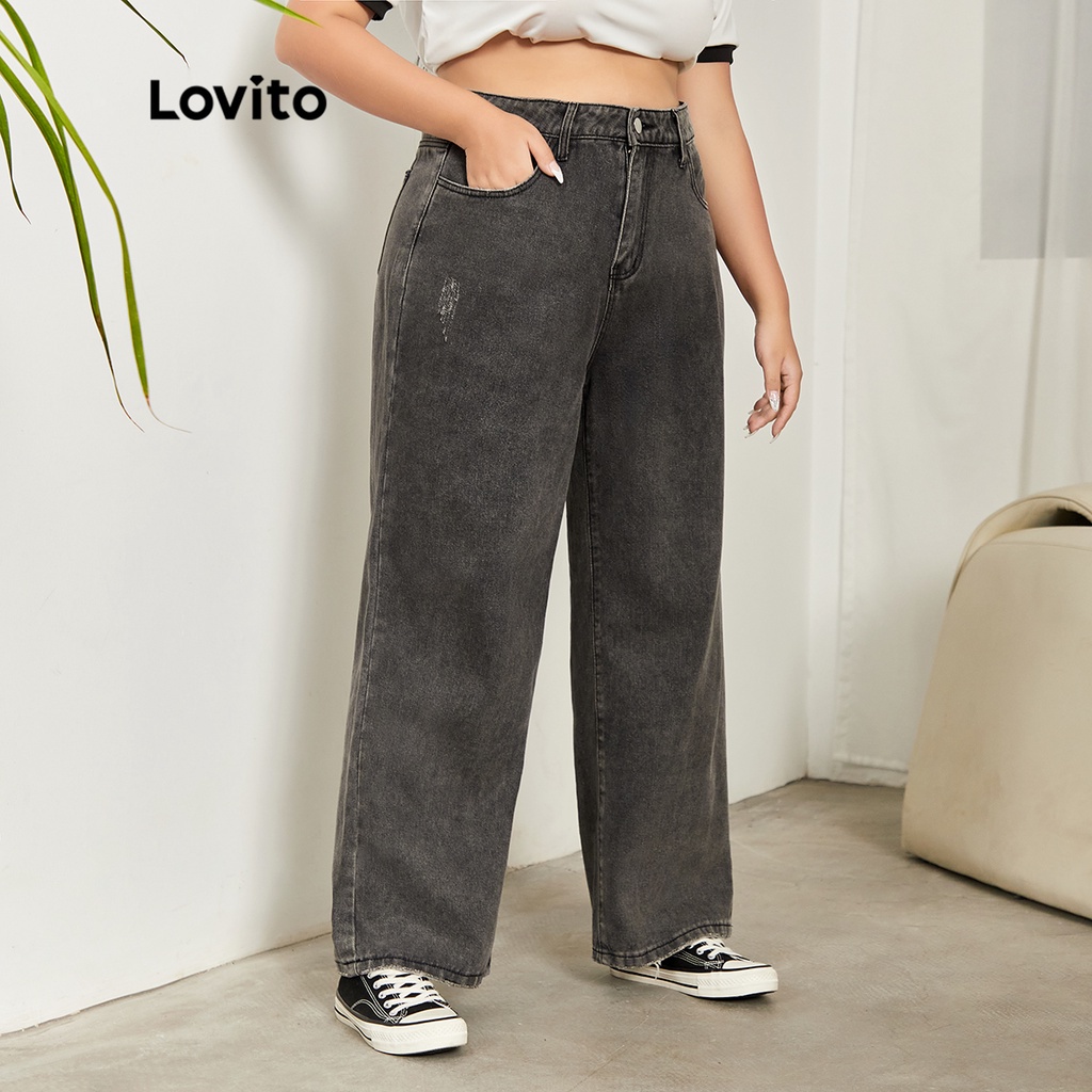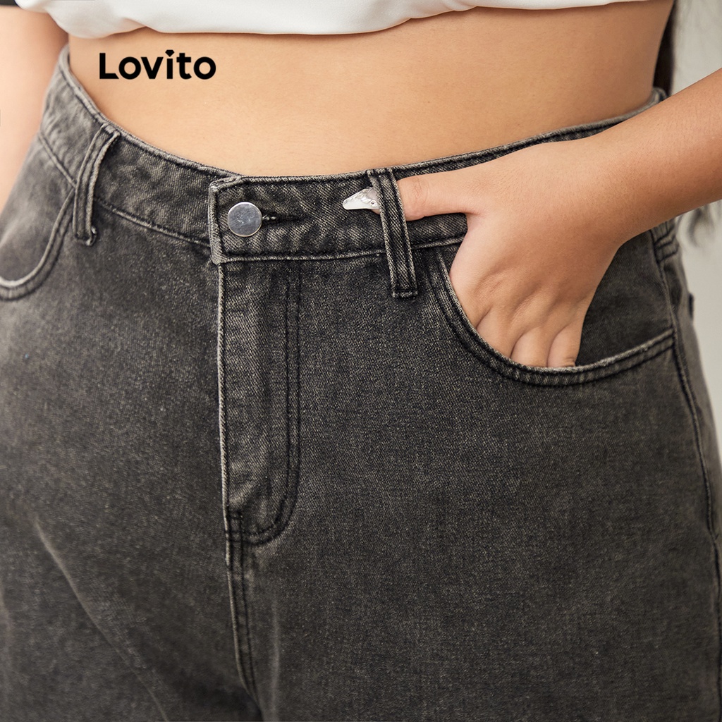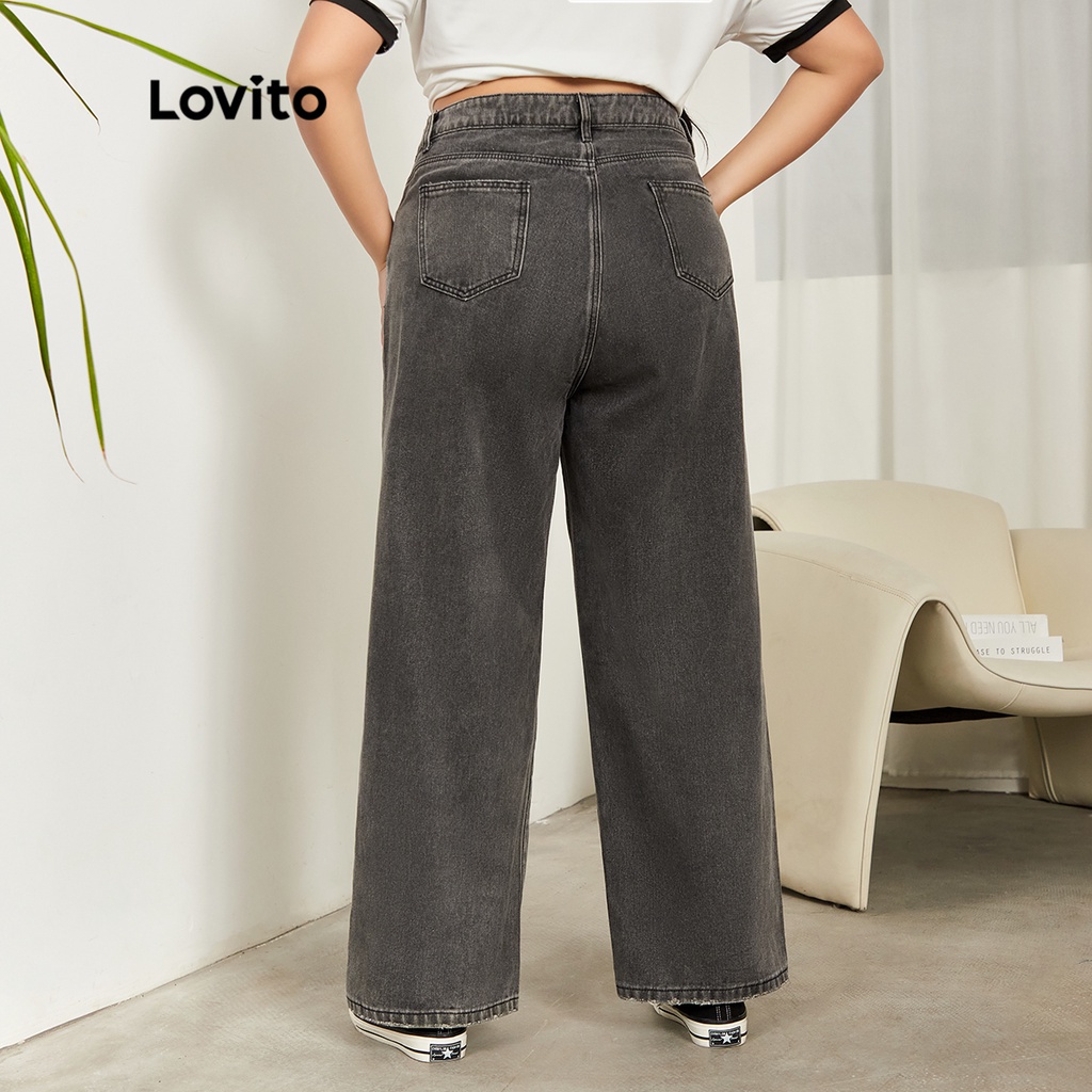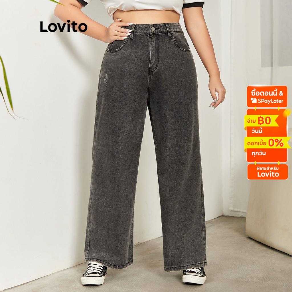 Lovito Quần bò nữ có túi khóa kéo Màu Trơn Cỡ Lớn thường ngày lps09108 (màu xanh dương)