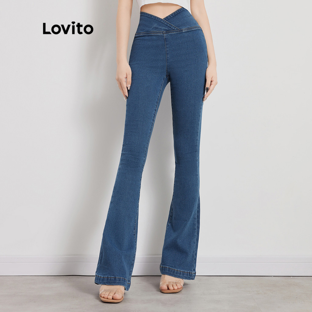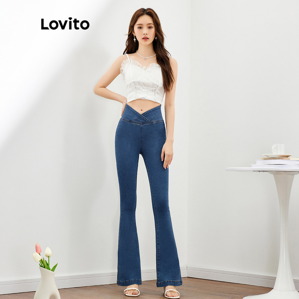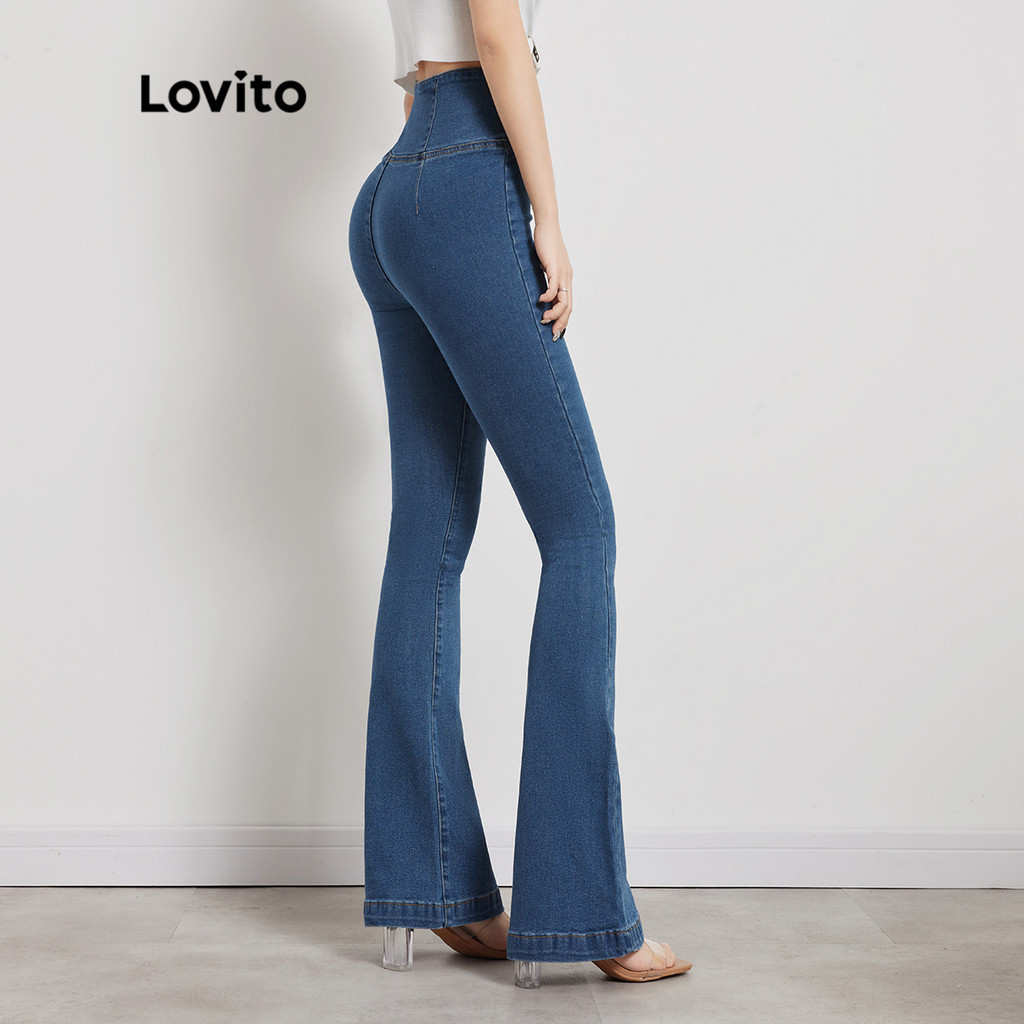 Lovito Quần bò nữ dài khóa kéo cao màu trơn thường ngày l47ad053 (Nhiều màu)