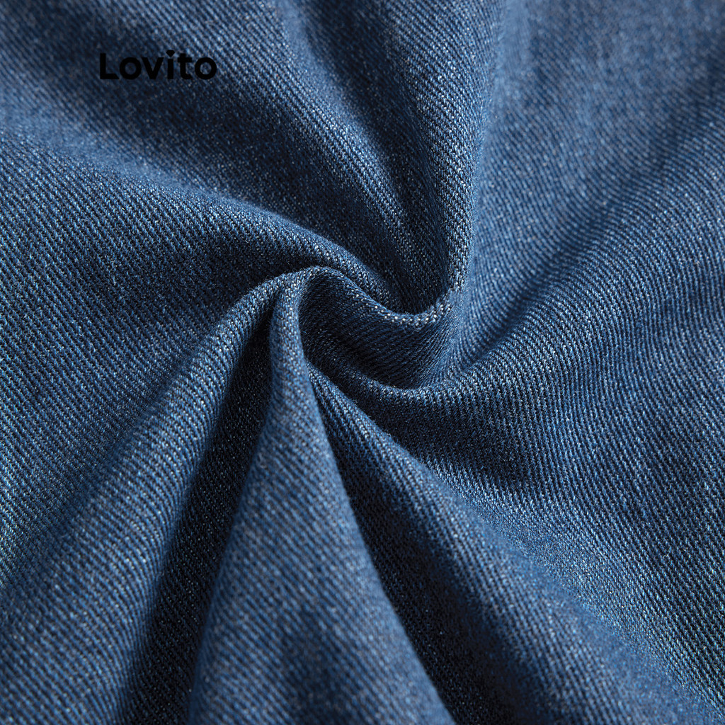 Lovito Quần bò hai hàng khuy màu trơn thanh lịch cho nữ l59ed014 (màu xanh dương)