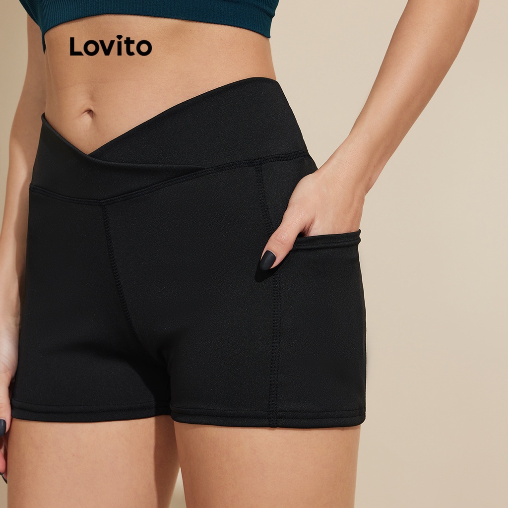 Lovito quần soóc thể thao cơ bản cho nữ quần thể thao màu trơn lnl43178