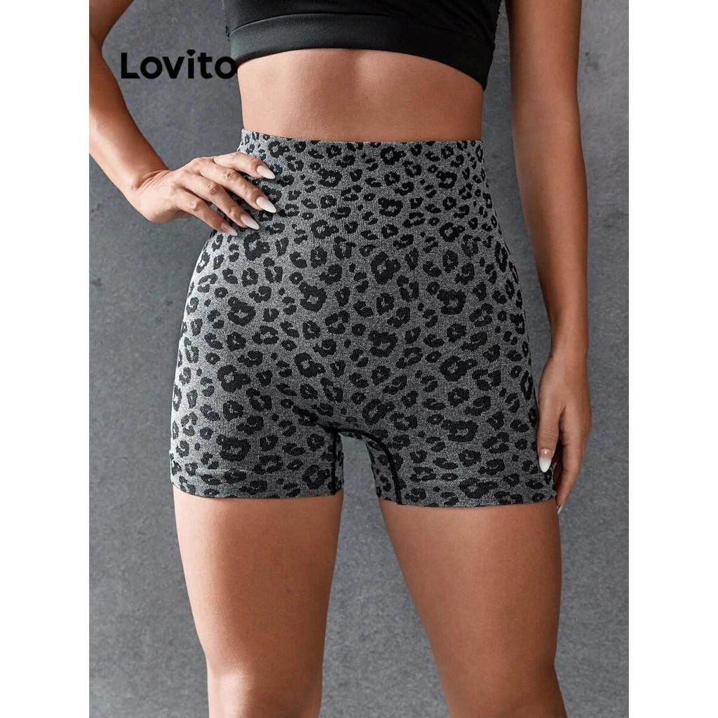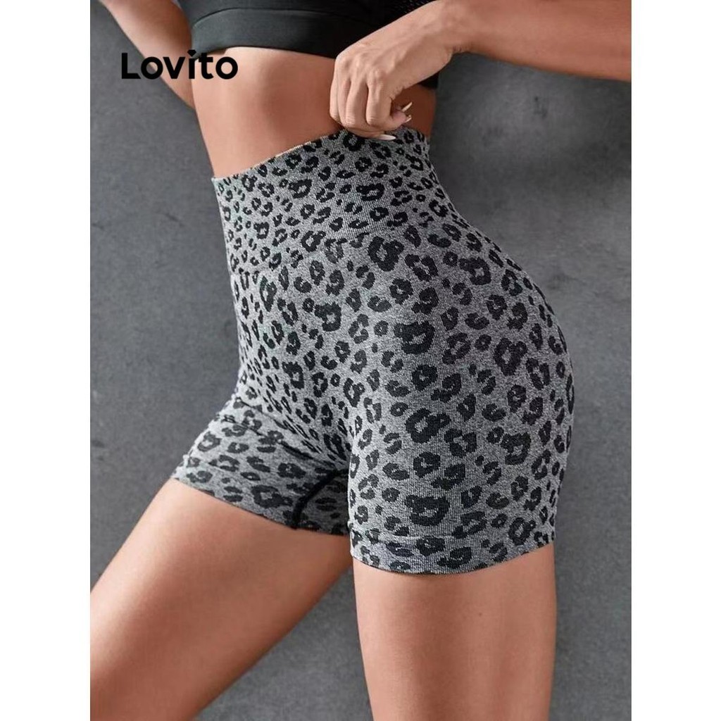 Lovito Quần ngắn nữ in chữ co giãn cao l48ad053 (màu cam/Tím bụi/Xám/Xanh lá/Đen)