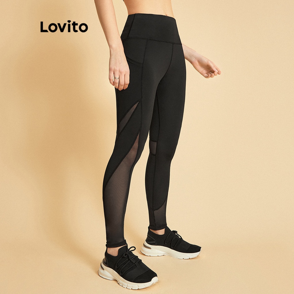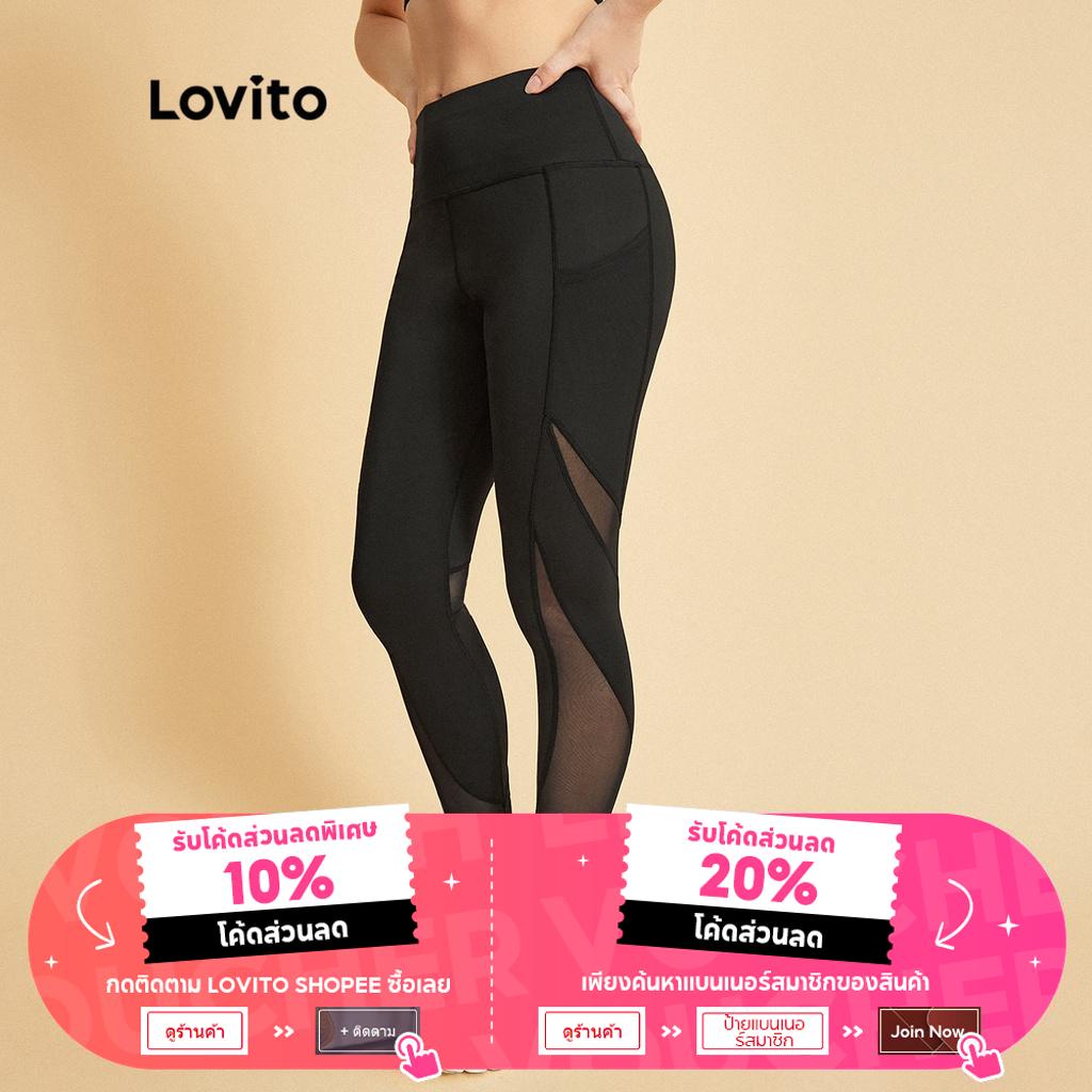 Lovito Quần Yoga thể thao cạp cao kiểu cơ bản l02044 (Xanh nhạt/hồng/đen/xanh đậm/Xám/Xanh lá/Tím)