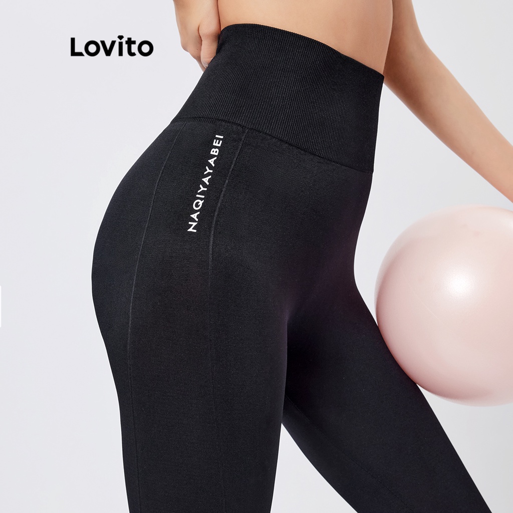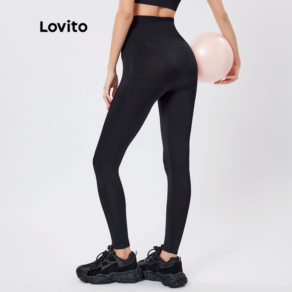 Lovito quần legging cạp cao chéo không đối xứng màu trơn thường ngày cho Nữ lne02155 (Màu Đen)