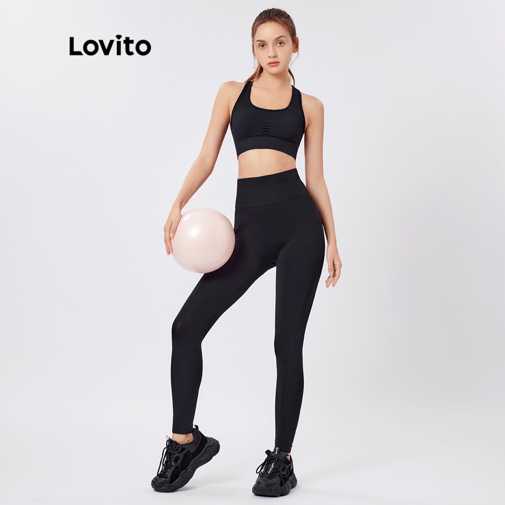 Lovito Quần legging thể thao có túi màu trơn thường ngày cho Nữ lne37167 (Xám/Đen)