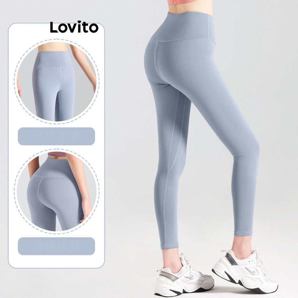 Lovito Quần legging thể thao co giãn cao in chữ l26ad043 (xám, hồng, xanh dương, đen)