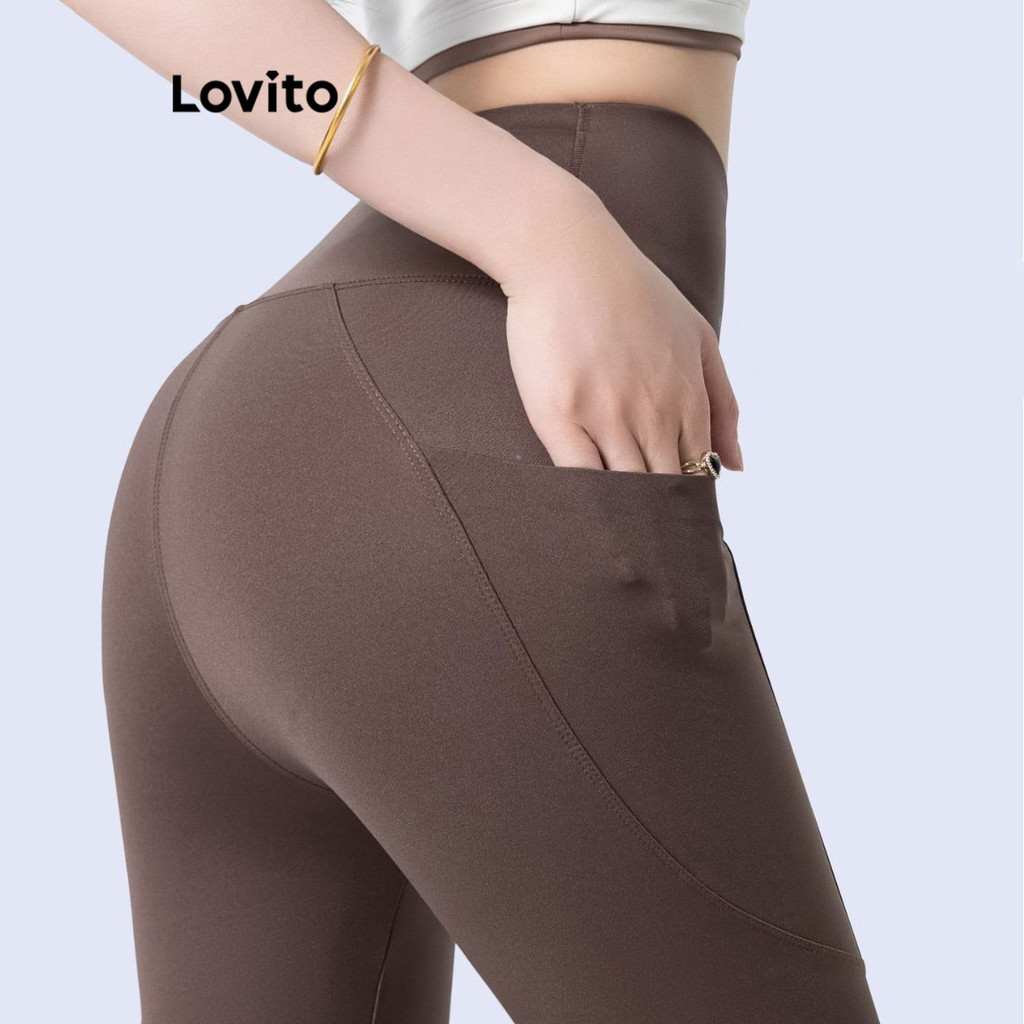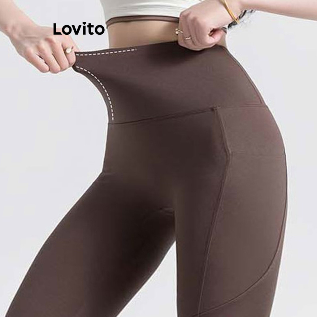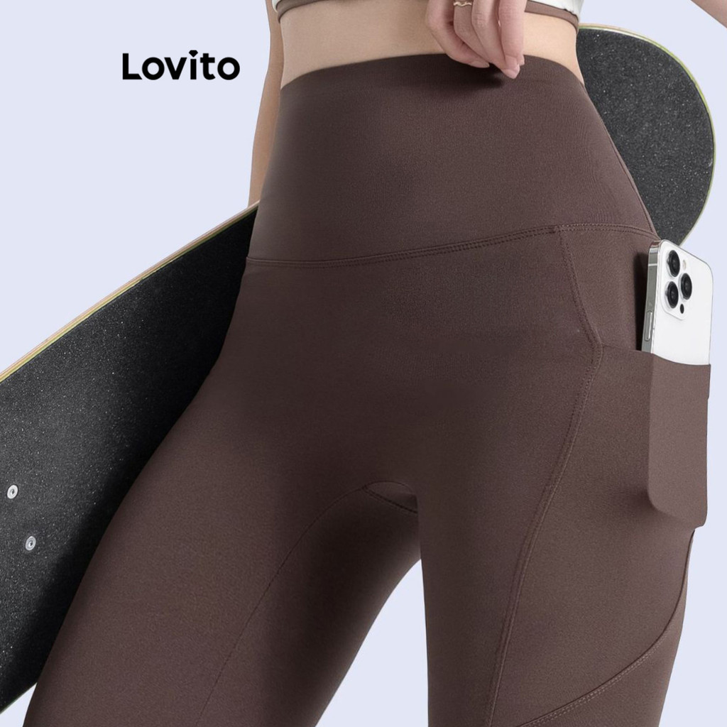 Lovito Quần legging thể thao có túi màu trơn thường ngày cho Nữ lne37167 (Xám/Đen)