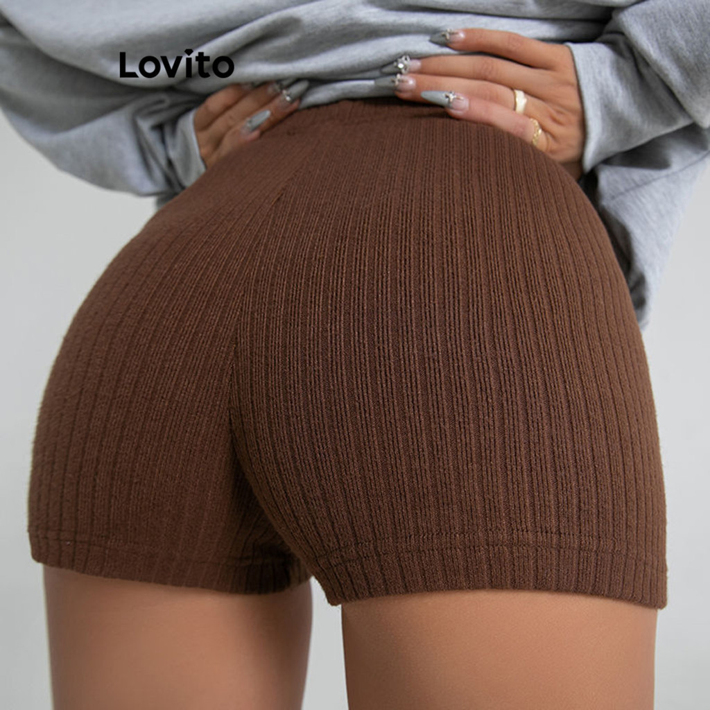 Lovito Quần ngắn nữ in chữ co giãn cao l48ad053 (màu cam/Tím bụi/Xám/Xanh lá/Đen)