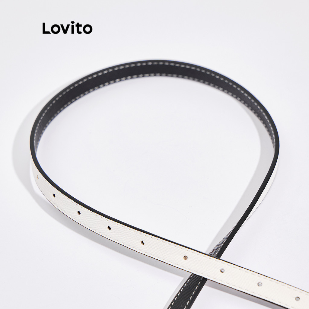 Lovito Thắt lưng nữ phong cách cơ bản trơn thường ngày l63ad366 (Nâu/Trắng nhạt/Đen)