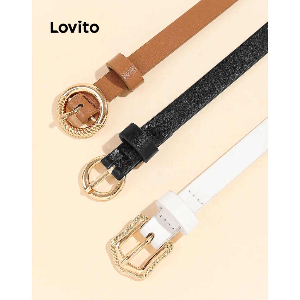 Lovito Thắt lưng nữ thường ngày bằng kim loại cơ bản l60ad099 (Kaki/Nâu/Đen)