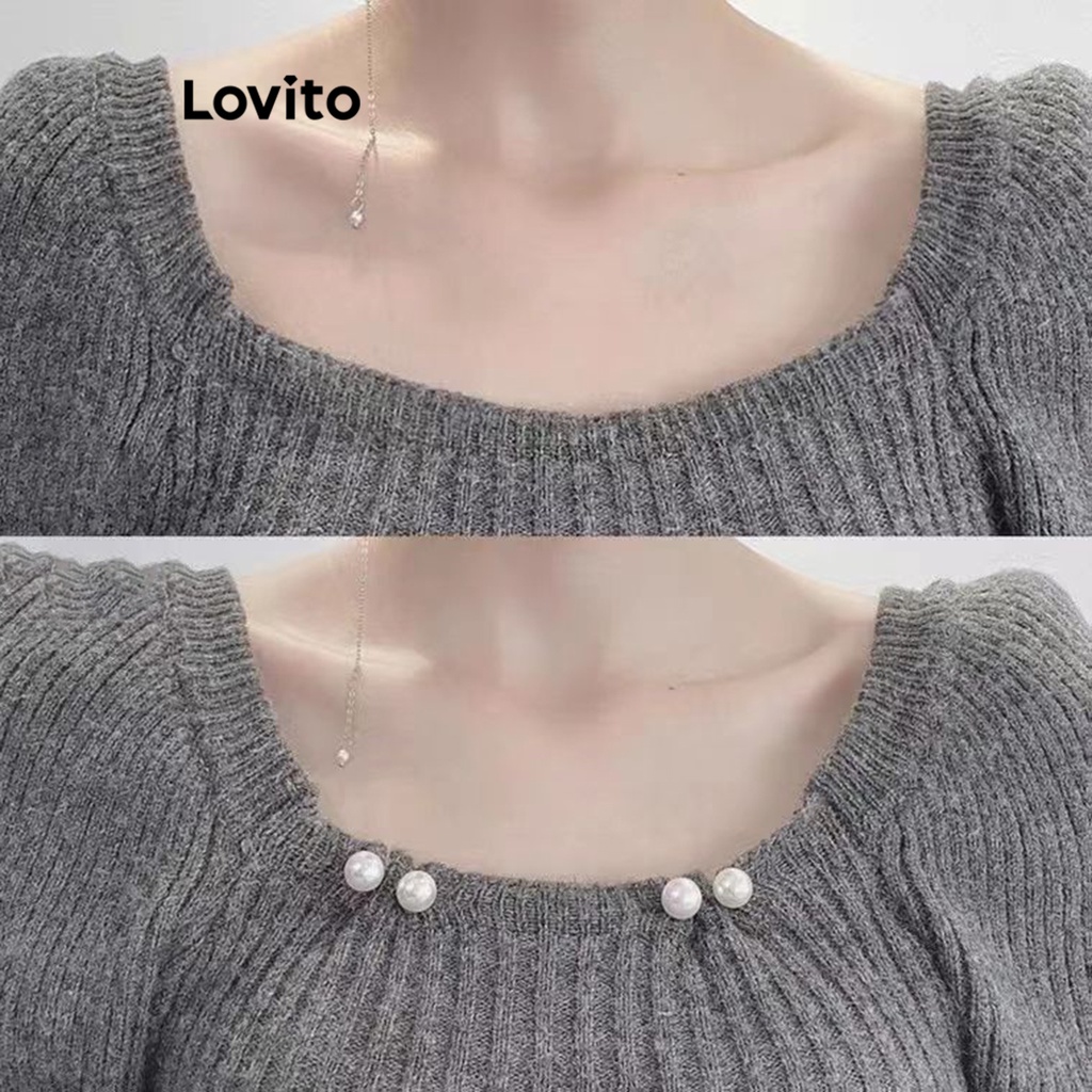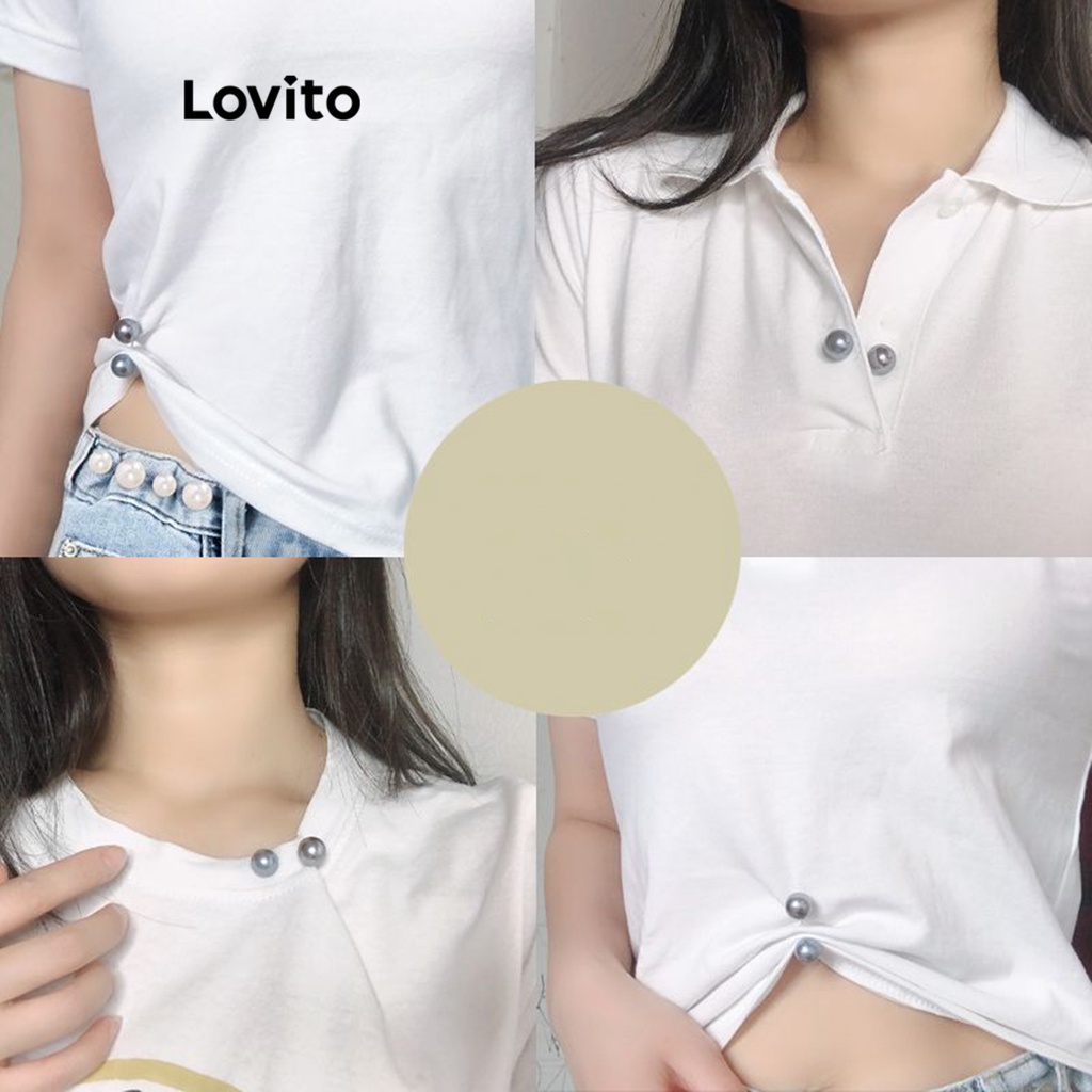 Lovito đinh tán thường ngày bằng kim loại trơn ngọc trai cho nữ l60ad008 (Trắng/Đen & Trắng/Đen)