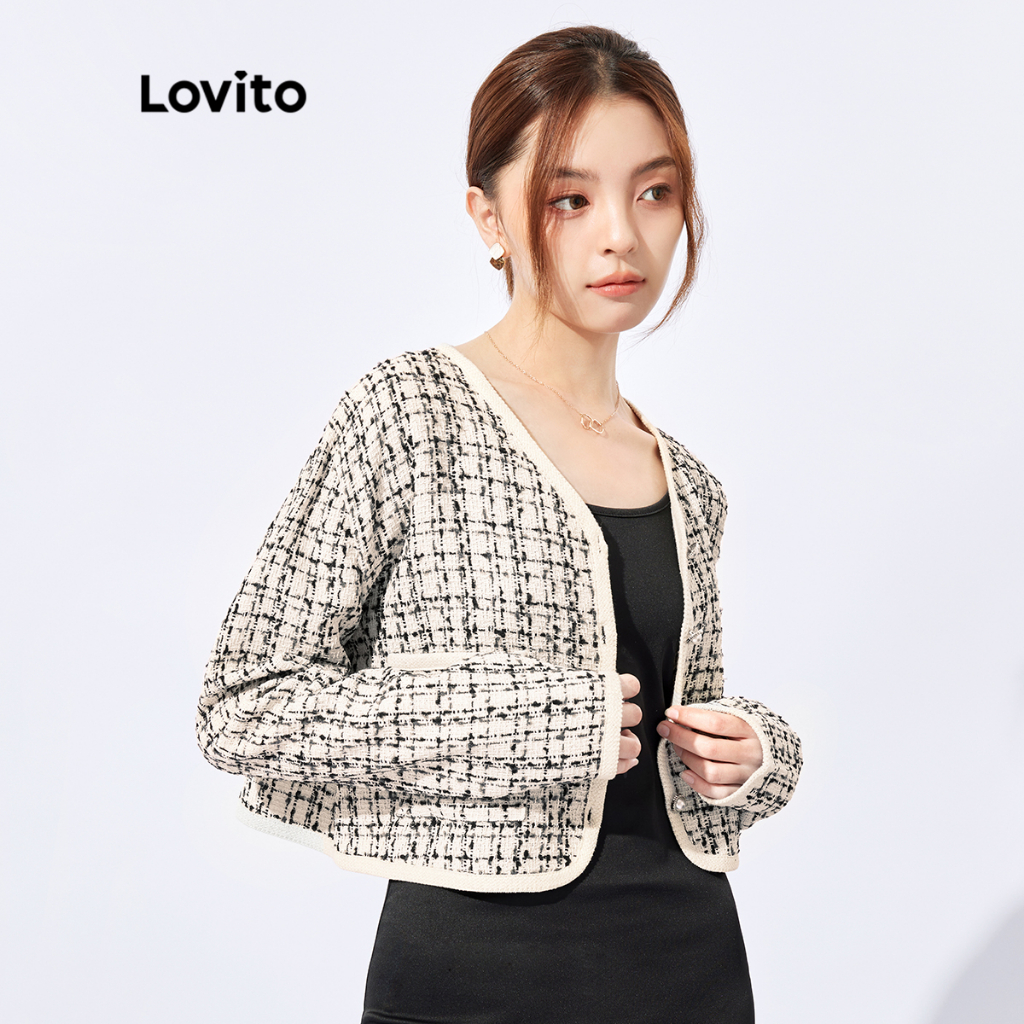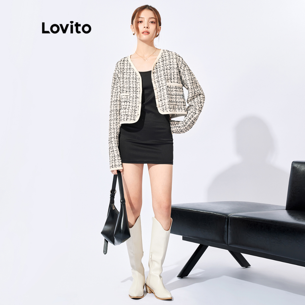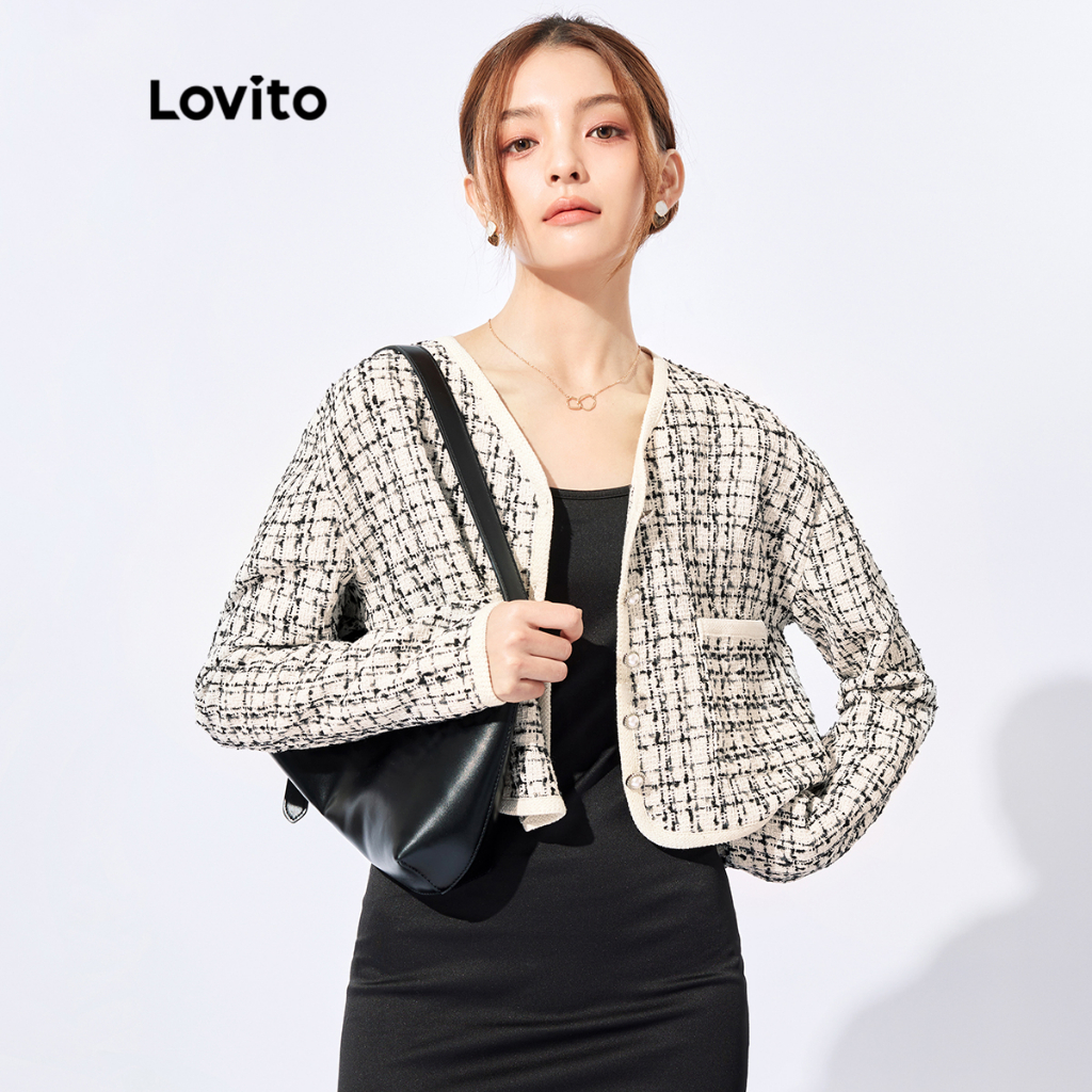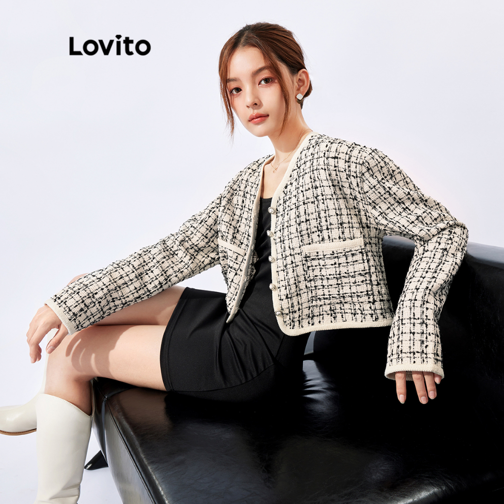 Lovito Áo khoác nữ cổ cài khuy thanh lịch l32fw095 (màu đen) (chỉ trực tiếp)