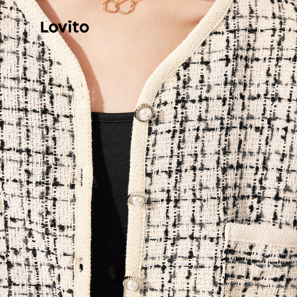 Lovito Áo khoác cài khuy màu trơn thường ngày thời trang nữ l39ad009 (Màu Trắng nhạt)
