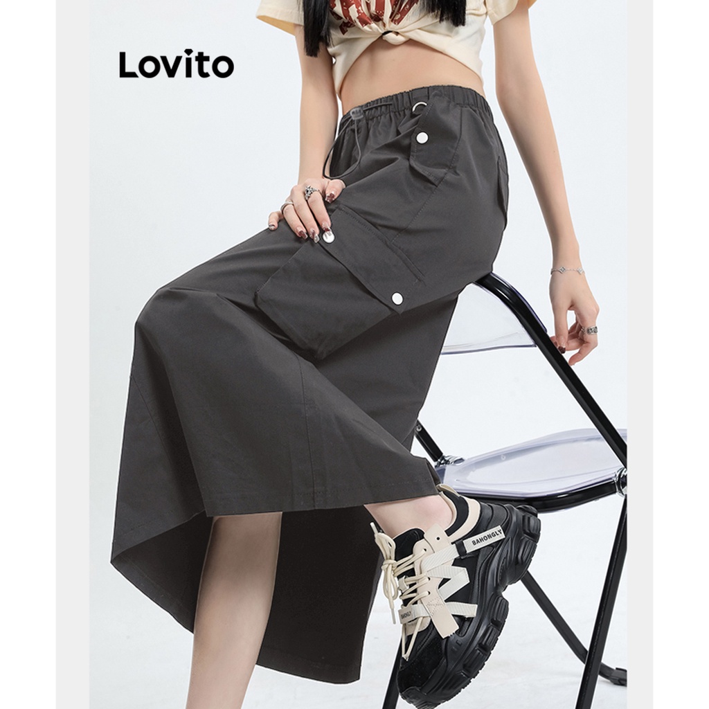 Lovito váy xếp ly dây rút màu trơn thường ngày cho Nữ lne30034 (Xám/Trắng nhạt/Đen)