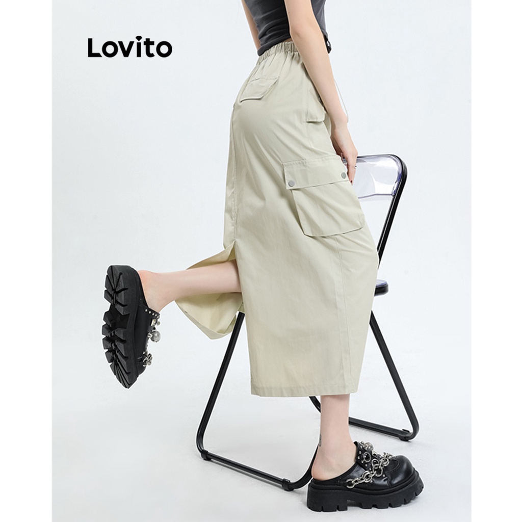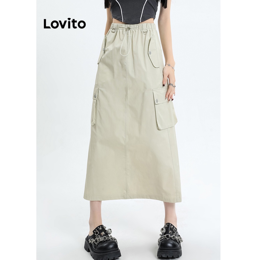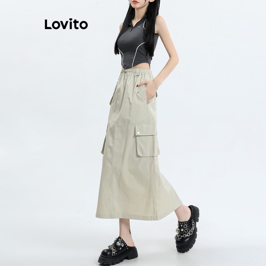 Lovito váy thắt lưng màu trơn thường ngày cho Nữ lna21057 (Nhiều màu)