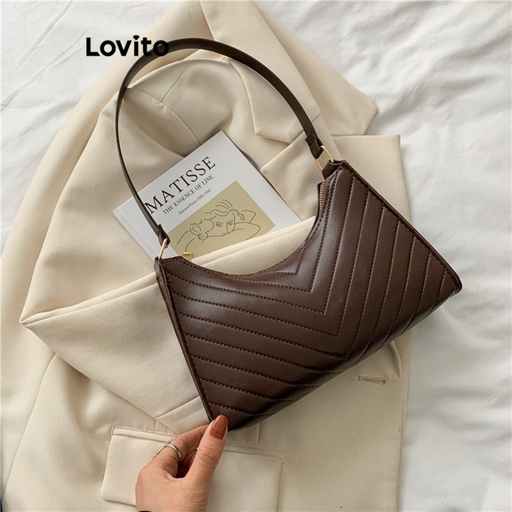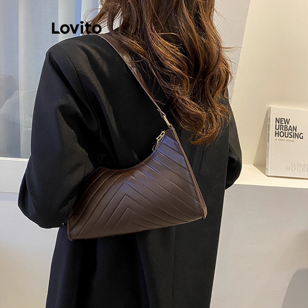 Lovito Túi Đeo Vai thường ngày màu trơn cổ điển cho nữ lna09168 (Cà phê/Nâu/Đen)