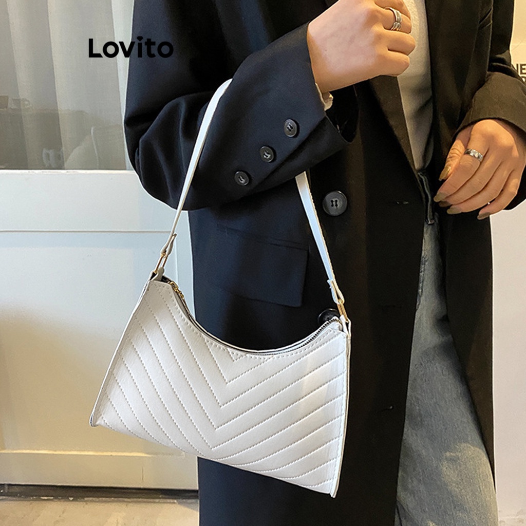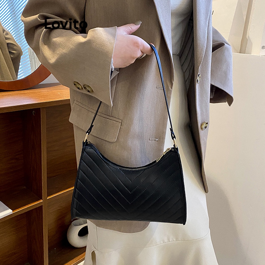 Lovito Túi đeo vai nữ màu trơn có khóa kéo nhỏ thường ngày l63ad 310 (Nâu/Hồng Nóng/Trắng/Đen)