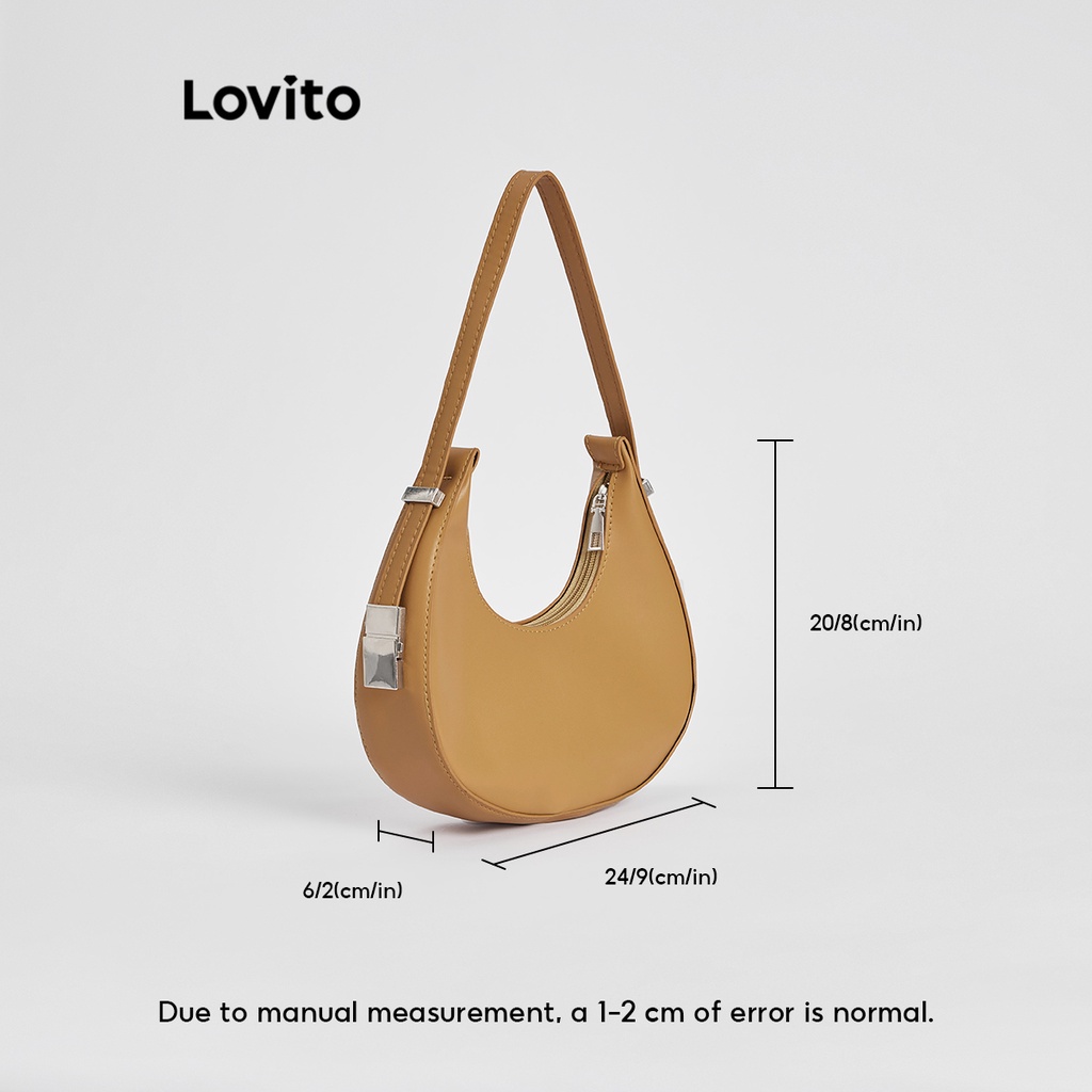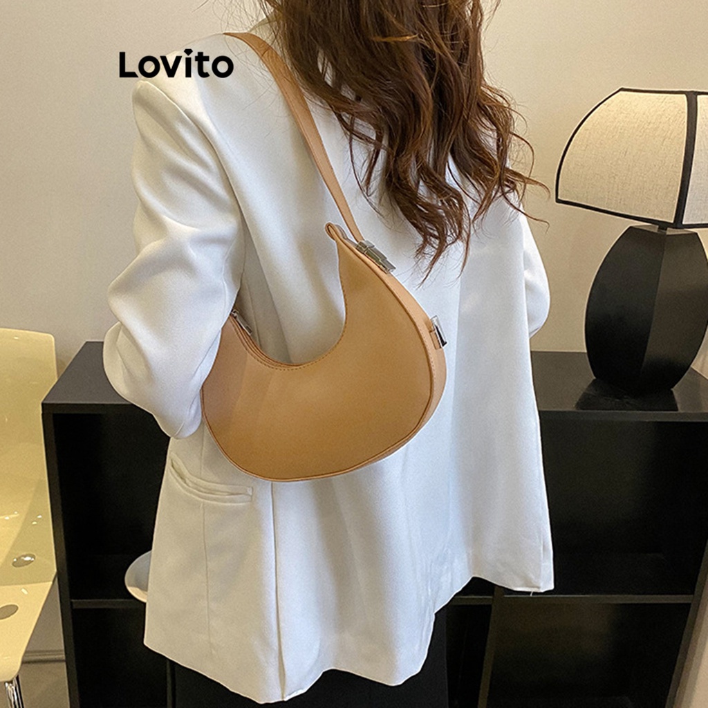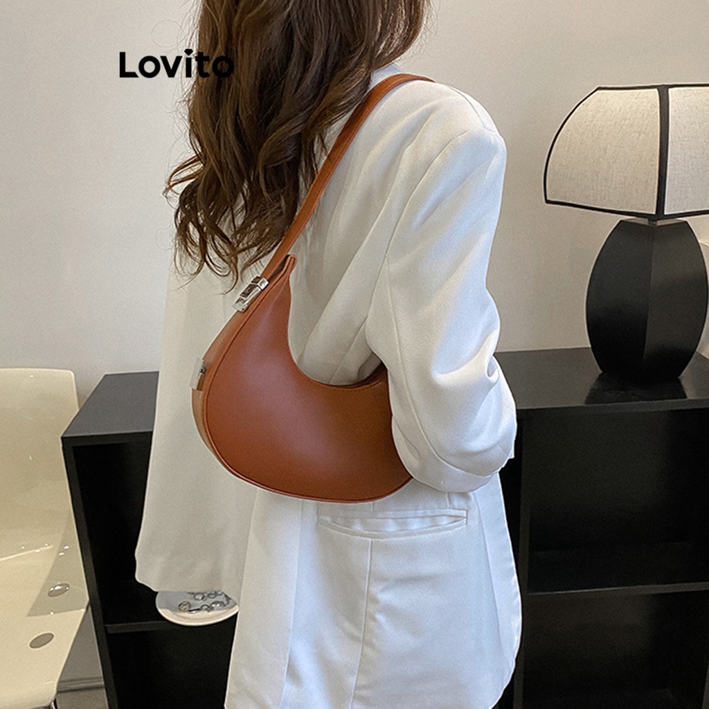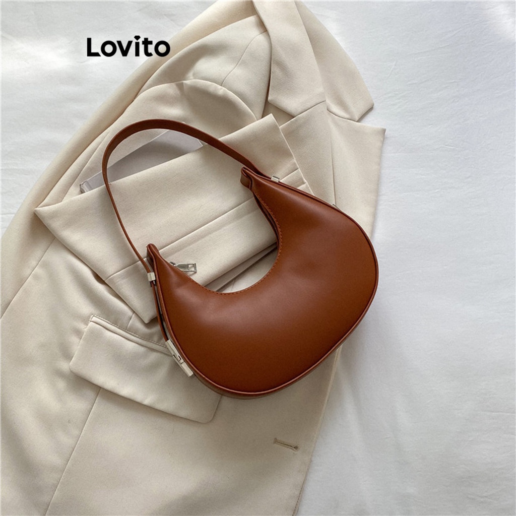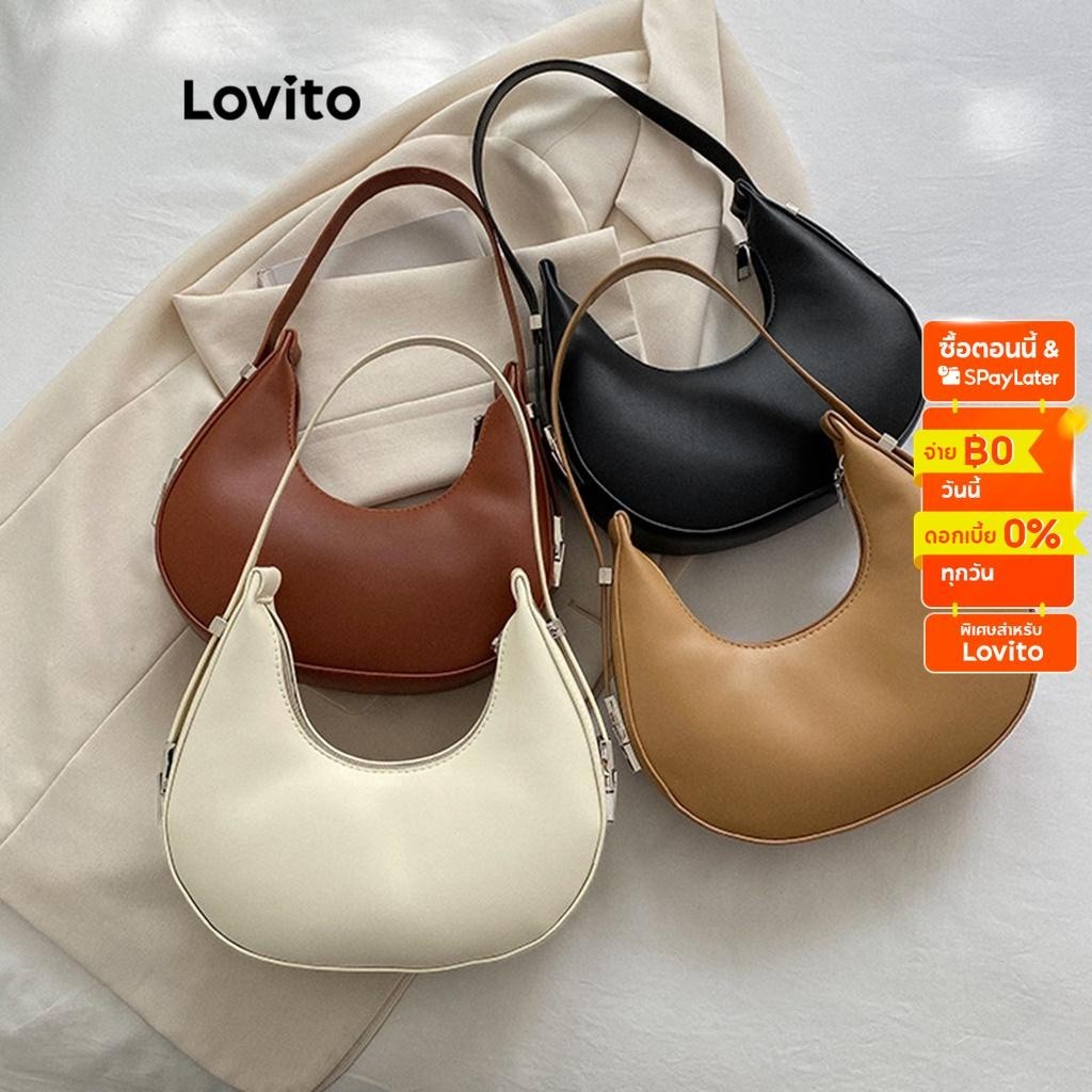 Lovito Túi đeo vai nữ màu trơn có khóa kéo nhỏ thường ngày l63ad 310 (Nâu/Hồng Nóng/Trắng/Đen)