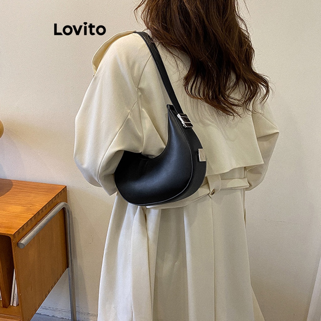 Lovito Túi Đeo Vai thường ngày màu trơn cổ điển cho nữ lna09168 (Cà phê/Nâu/Đen)