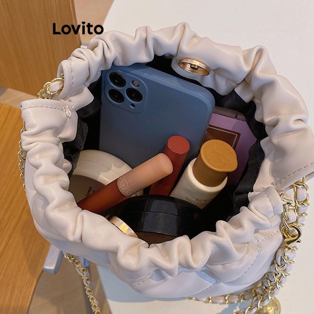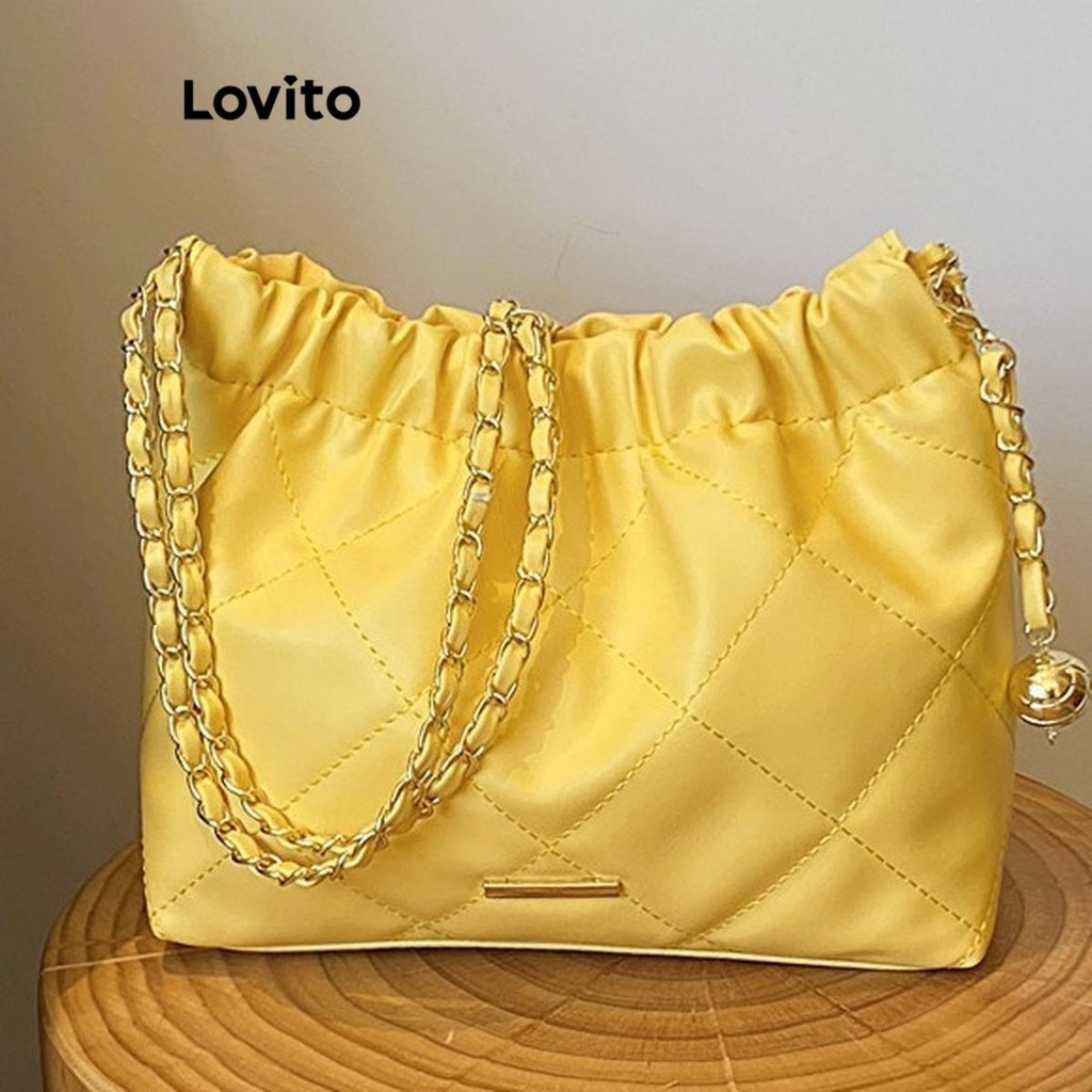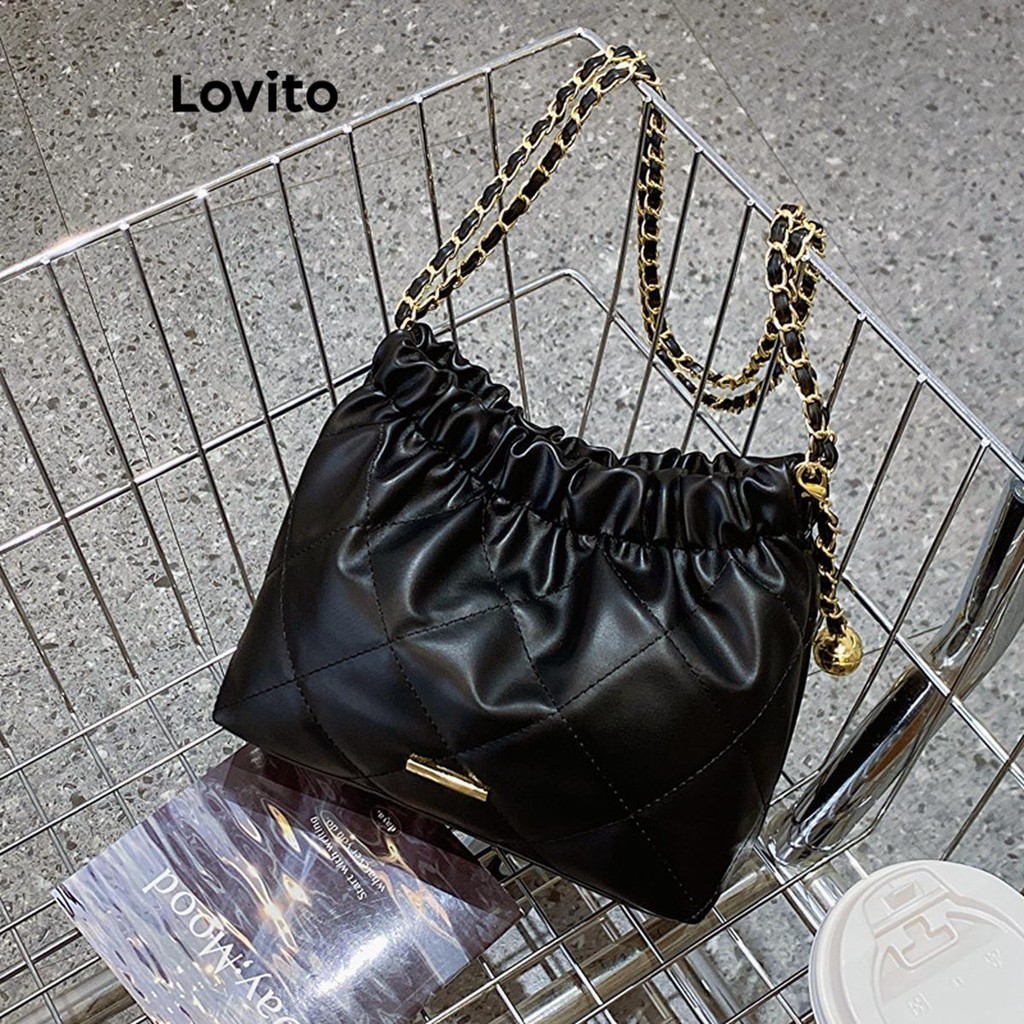 Lovito Túi Đeo Vai Nữ Túi tote thể thao dây xích màu trơn lna28335 (Màu Đen)