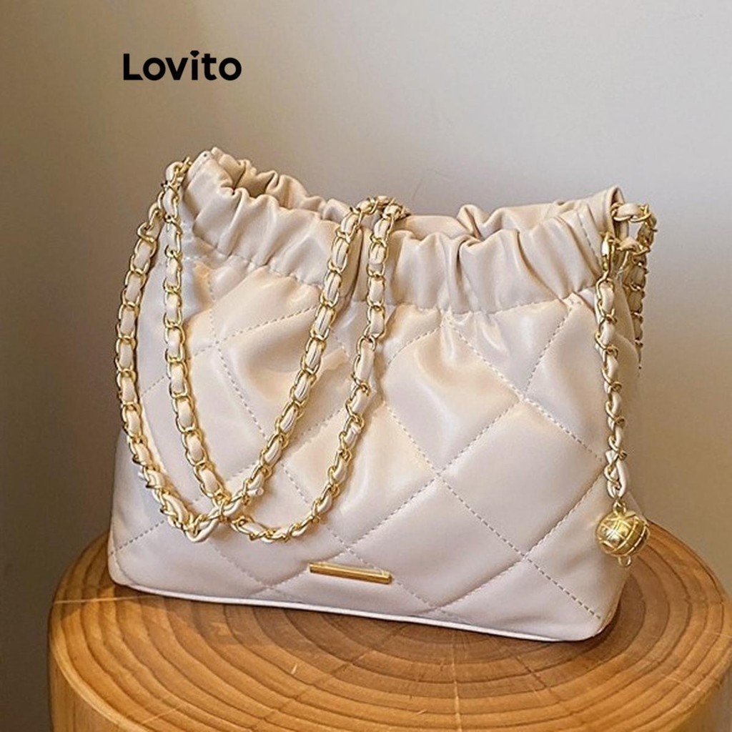 Lovito Túi tote đeo vai nữ túi vải trơn phong cách Hàn Quốc sang trọng thường ngày lfa12434