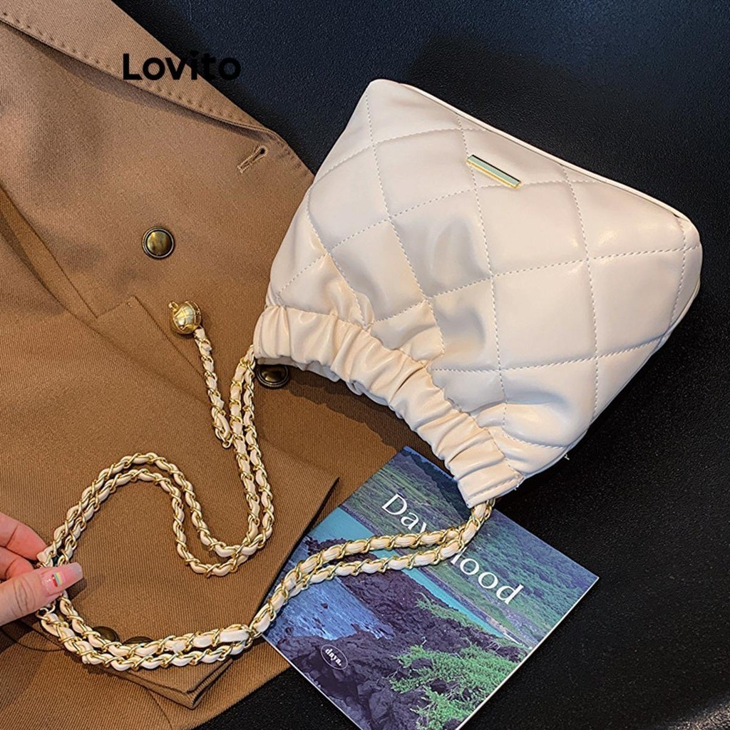 Lovito Túi đeo vai nữ sức chứa lớn lfa04285 màu trơn thường ngày (Nâu/Trắng nhạt/Đen)