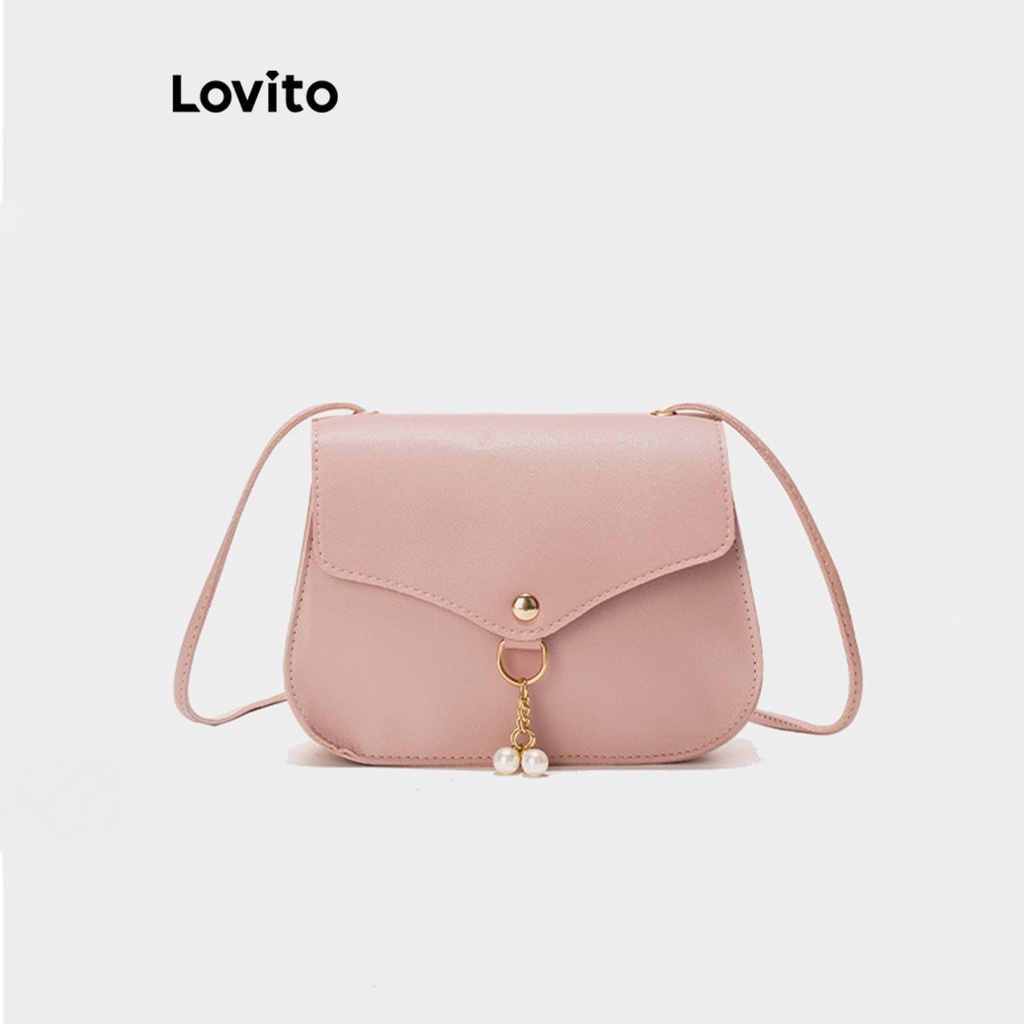 Lovito Túi đeo vai nữ màu trơn có khóa kéo nhỏ thường ngày l63ad 310 (Nâu/Hồng Nóng/Trắng/Đen)