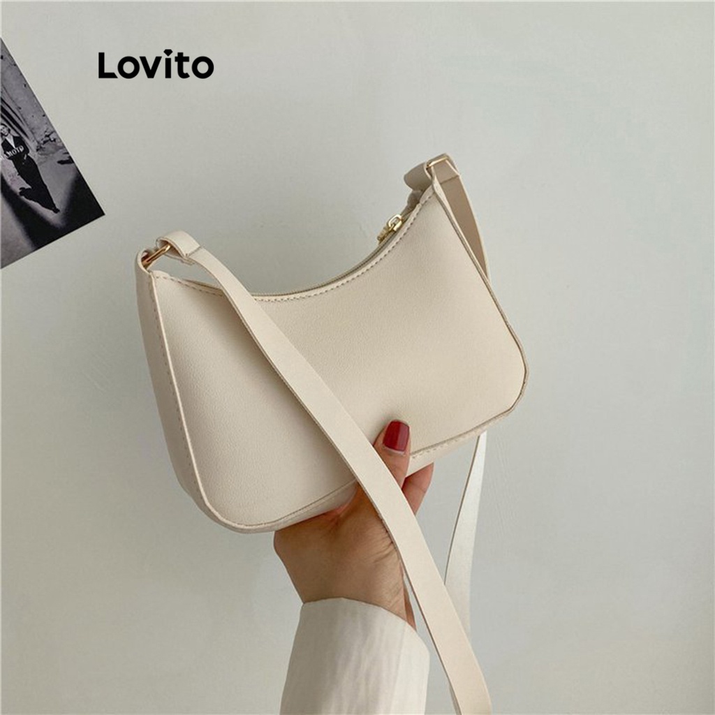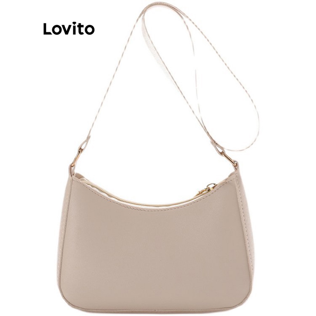 Lovito Túi đeo vai nữ màu trơn có khóa kéo nhỏ thường ngày l63ad 310 (Nâu/Hồng Nóng/Trắng/Đen)