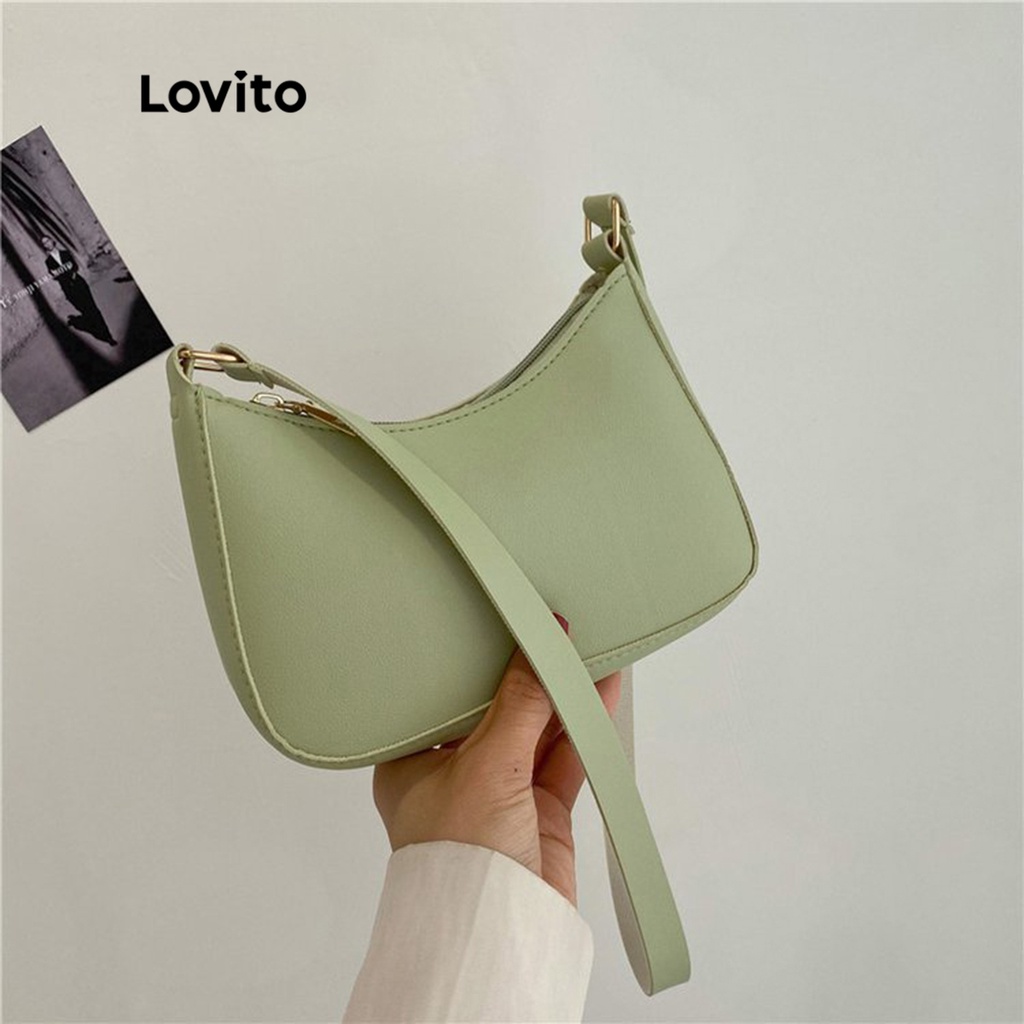 Lovito Túi Đeo Vai Hobo nữ màu trơn cổ điển hoài cổ l63ad324 (Kaki/Hồng đậm/Xanh lá/Đen)
