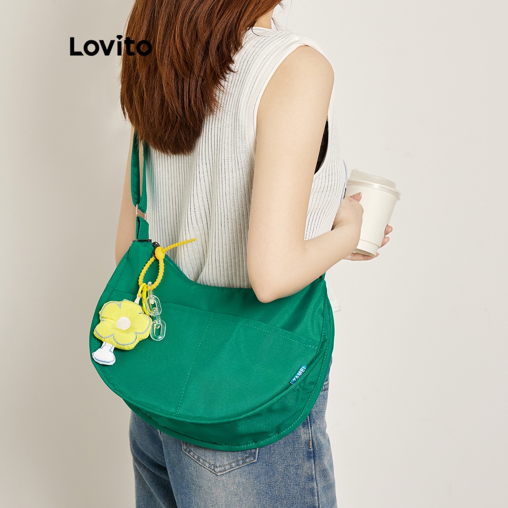 Túi tote nữ dễ thương mềm màu trơn thường ngày lovito l63ad336 (màu trắng/xanh lá/Xanh dương)