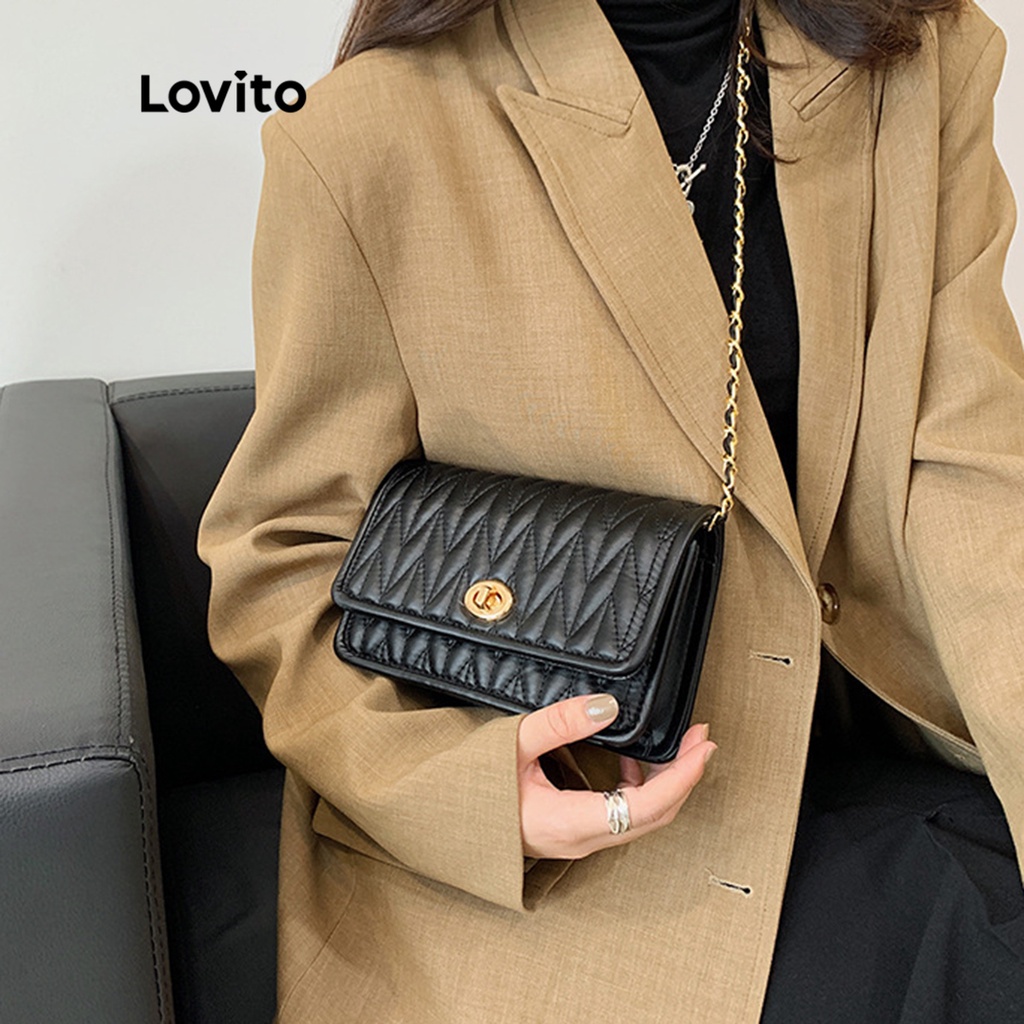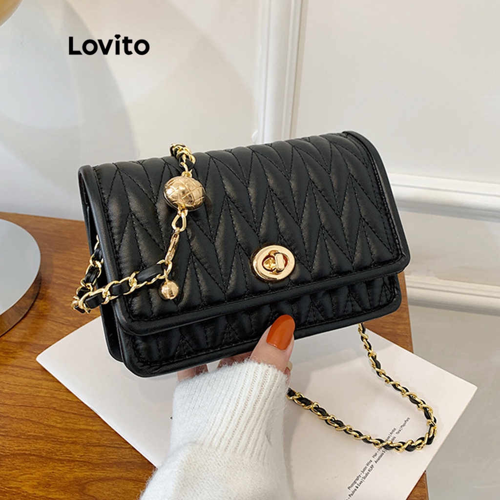 Lovito Túi đeo vai mini có dây xích màu trơn thường ngày cho Nữ l48ba011 (trắng/hồng/tím/xanh lá/Đen)