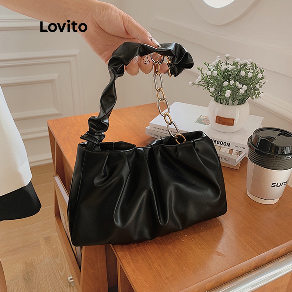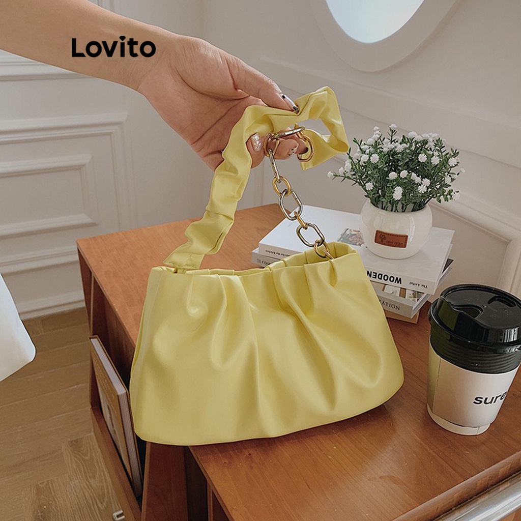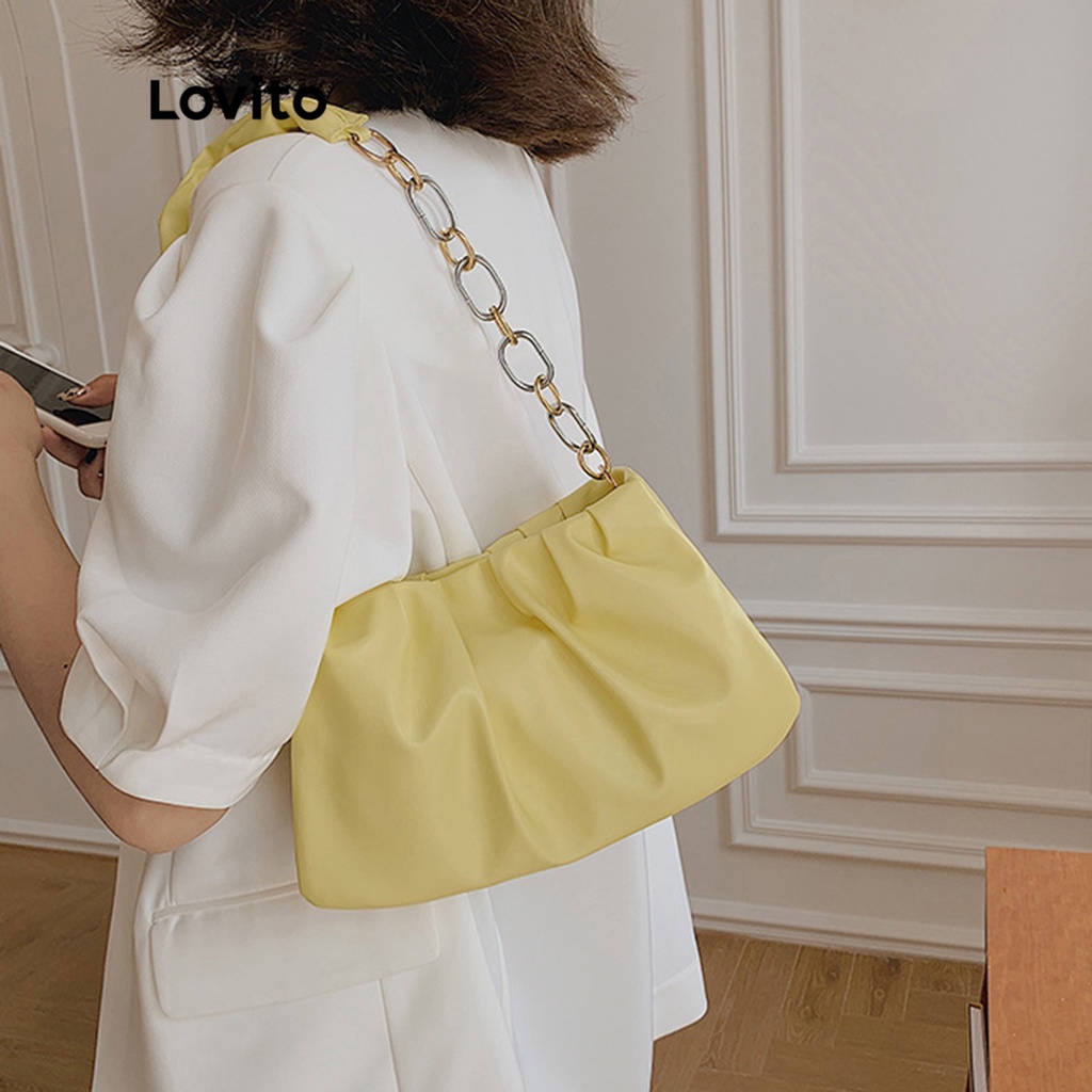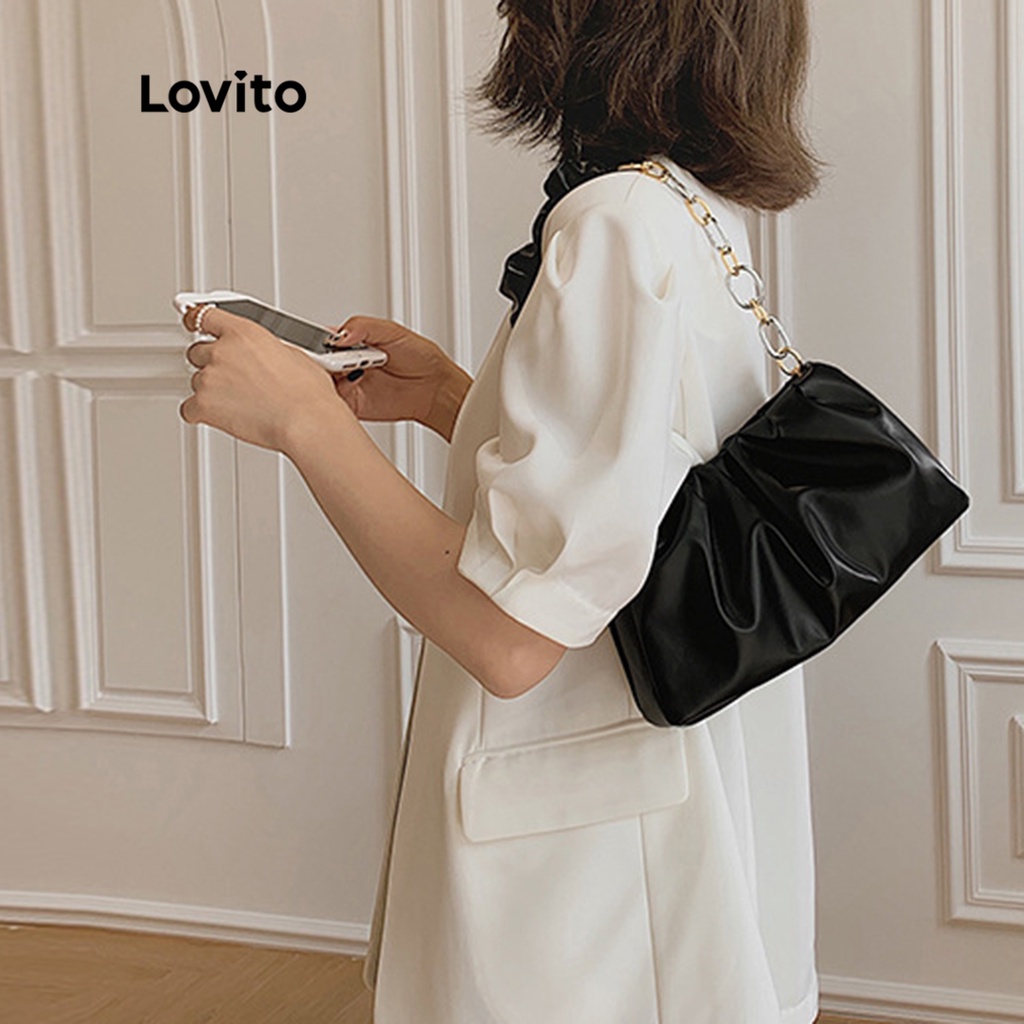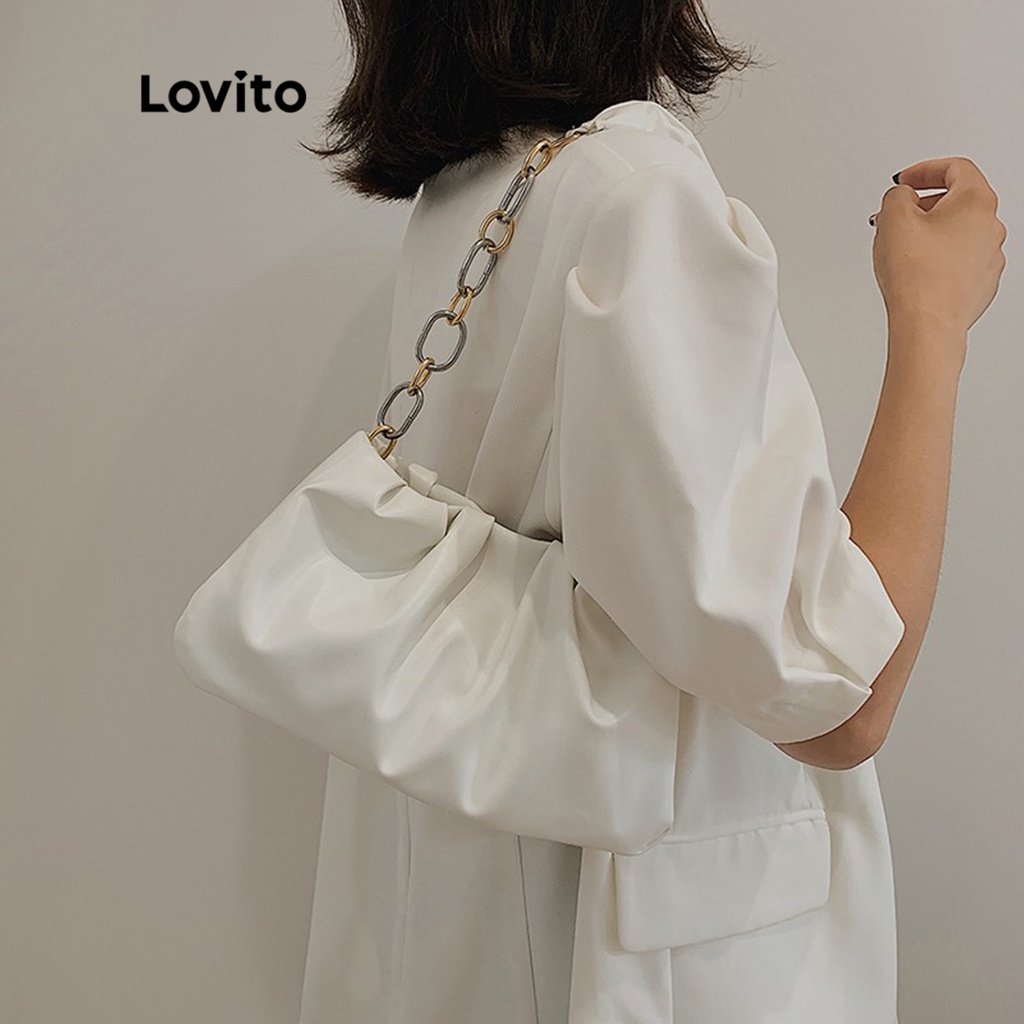 Lovito Túi đeo vai mini có dây xích màu trơn thường ngày cho Nữ l48ba011 (trắng/hồng/tím/xanh lá/Đen)