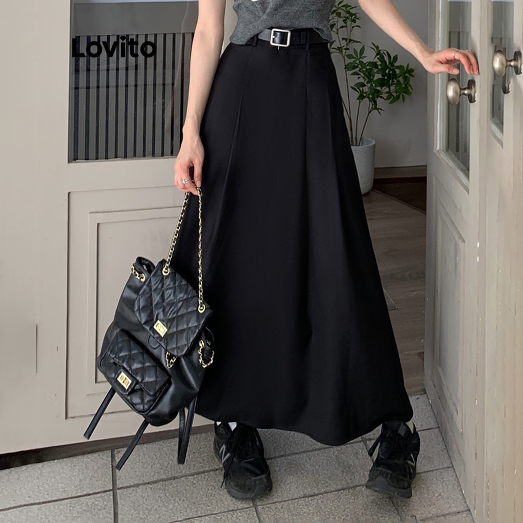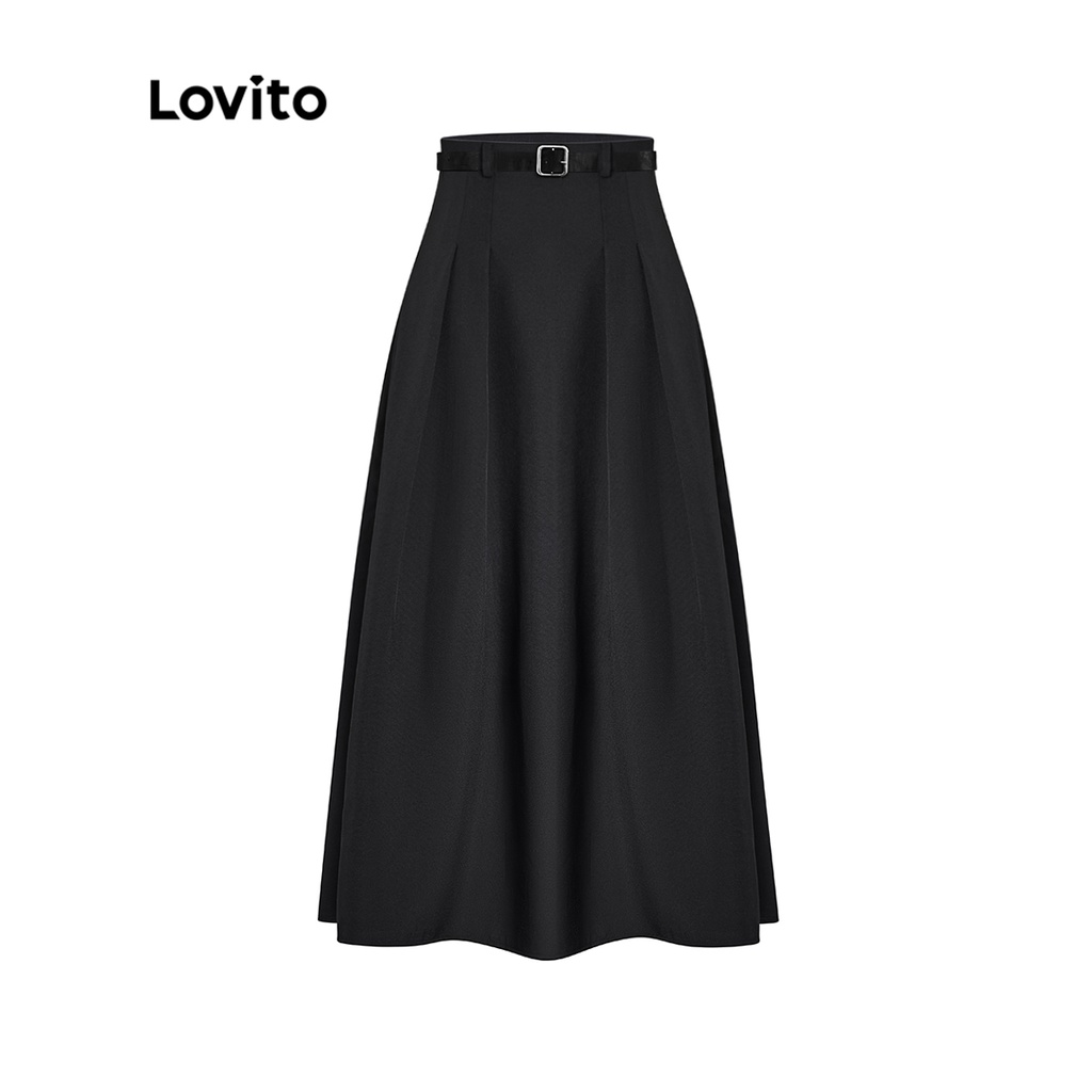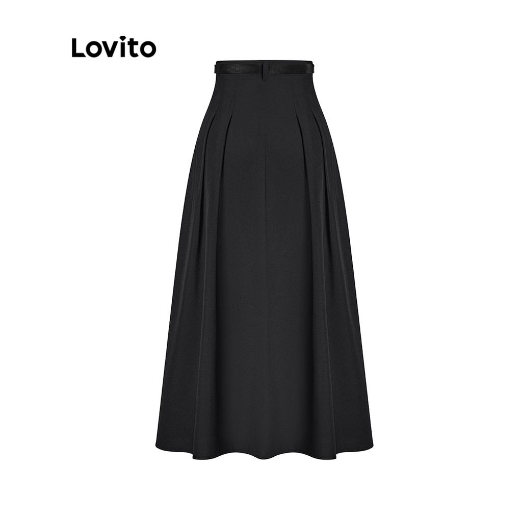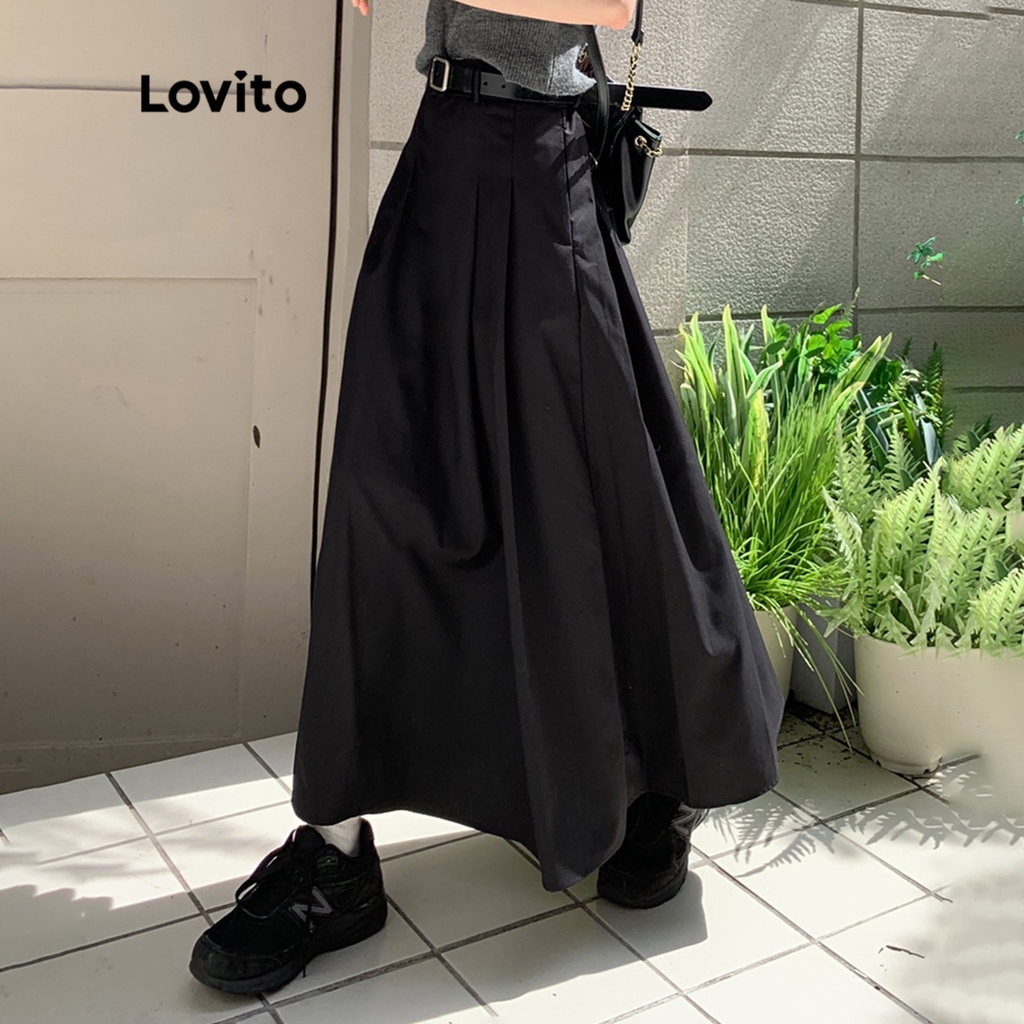 Lovito Chân váy midi lửng màu trơn thường ngày cho Nữ l49ad114 (màu xanh dương)