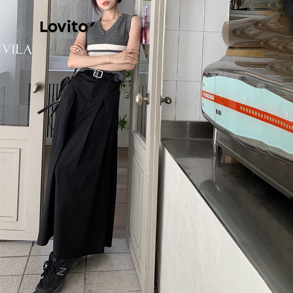 Lovito Chân váy midi đuôi có khóa kéo màu trơn thường ngày cho Nữ lne09201 (Hoa mai)
