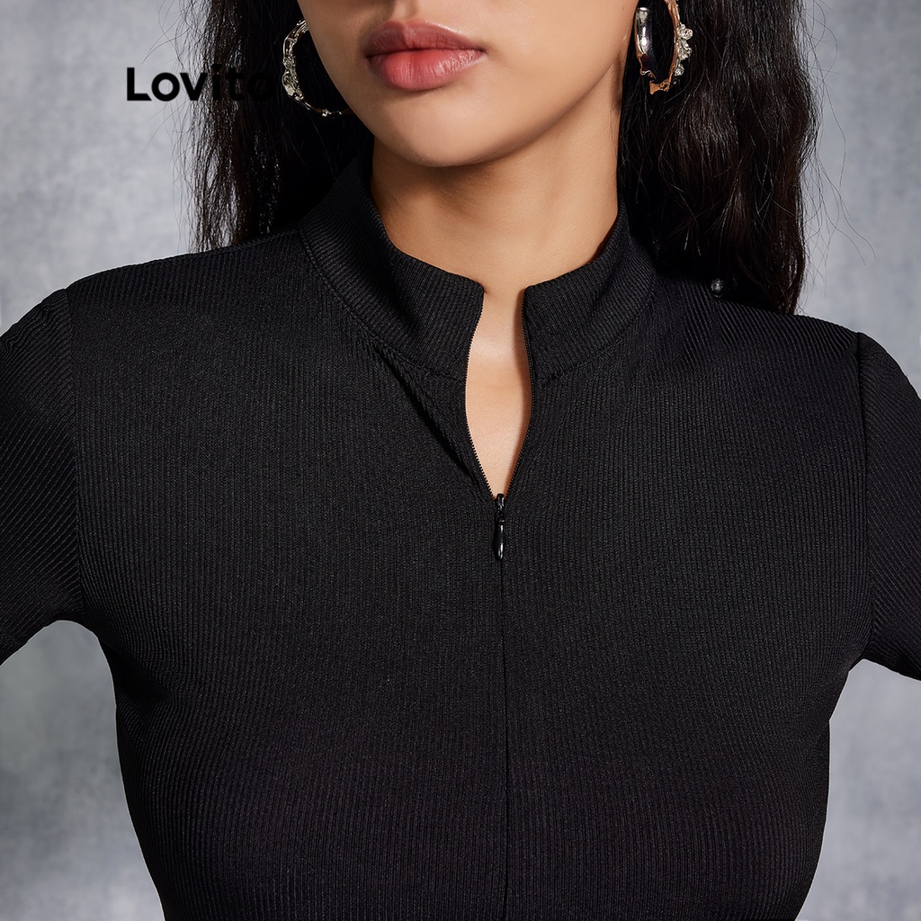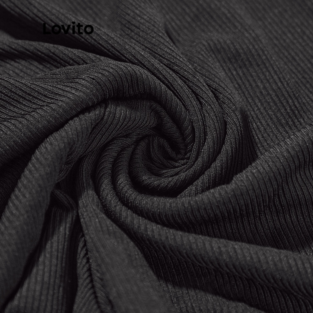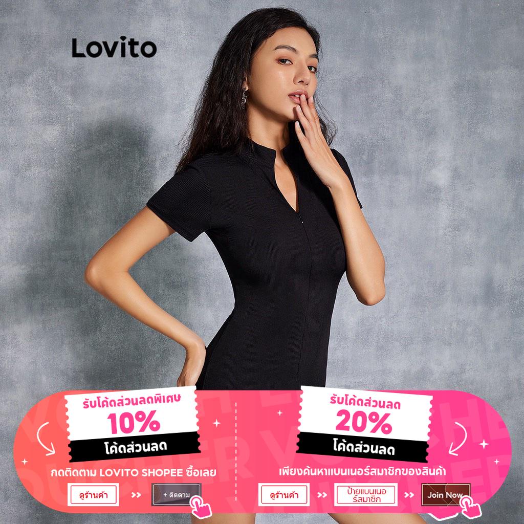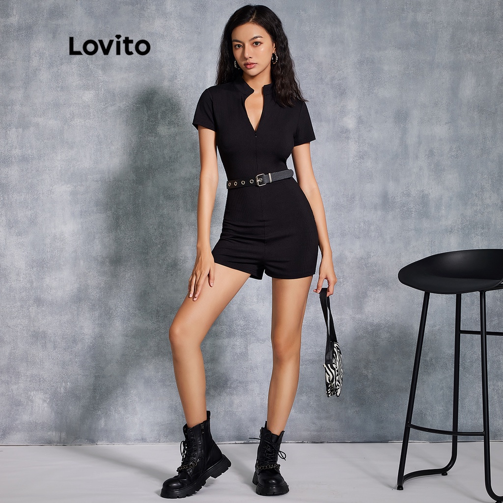 Lovito áo liền quần ngắn cổ tròn không tay màu trơn thường ngày cho Nữ l53ad078 (Màu Đen)