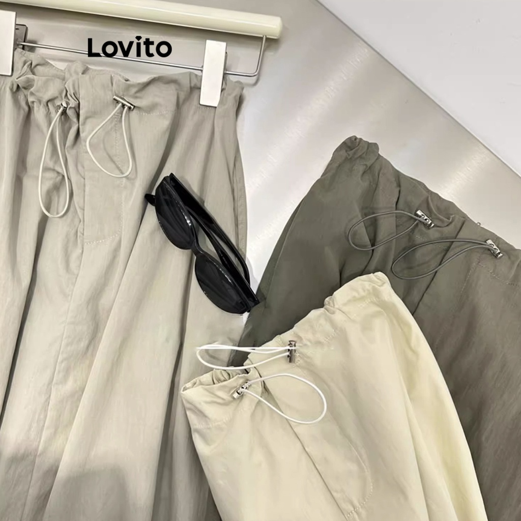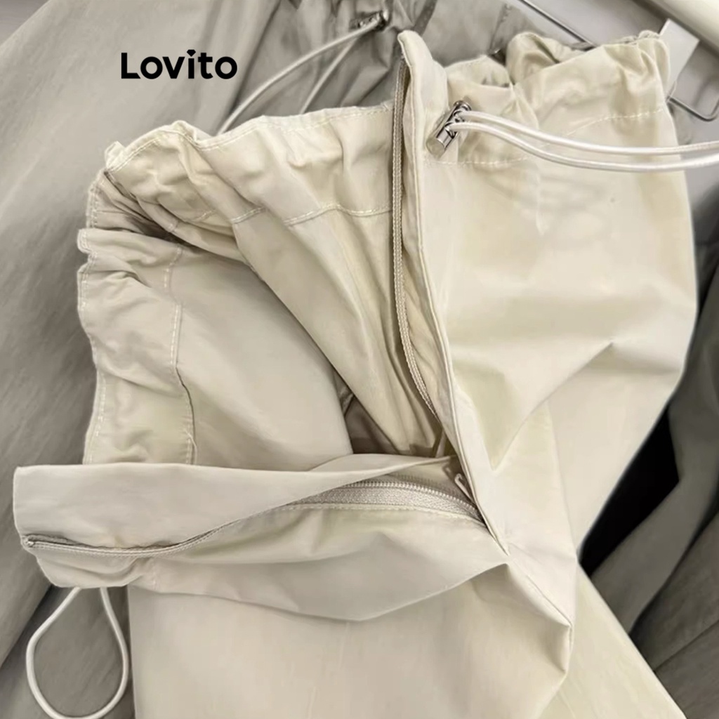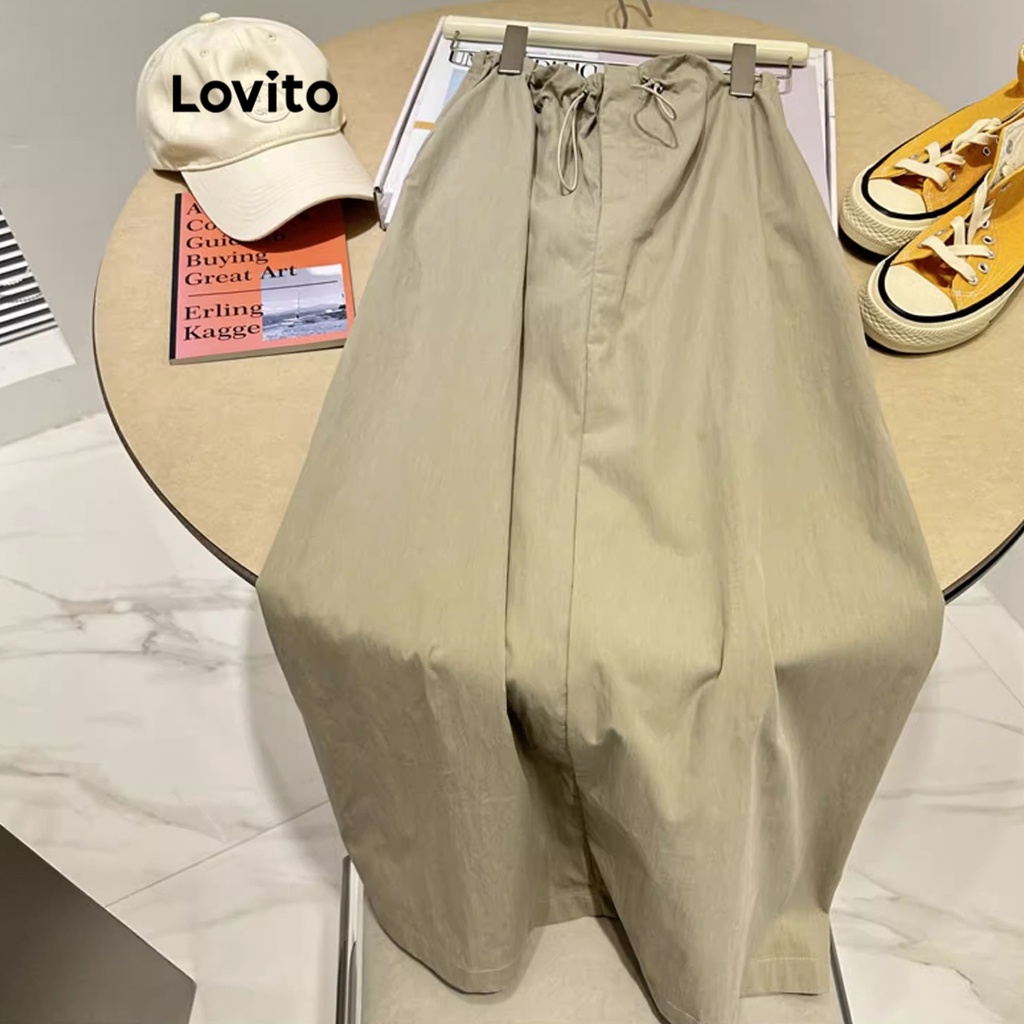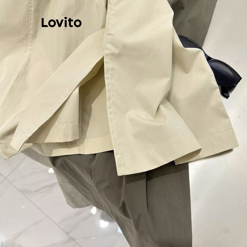 Lovito Chân váy midi đuôi có khóa kéo màu trơn thường ngày cho Nữ lne09201 (Hoa mai)