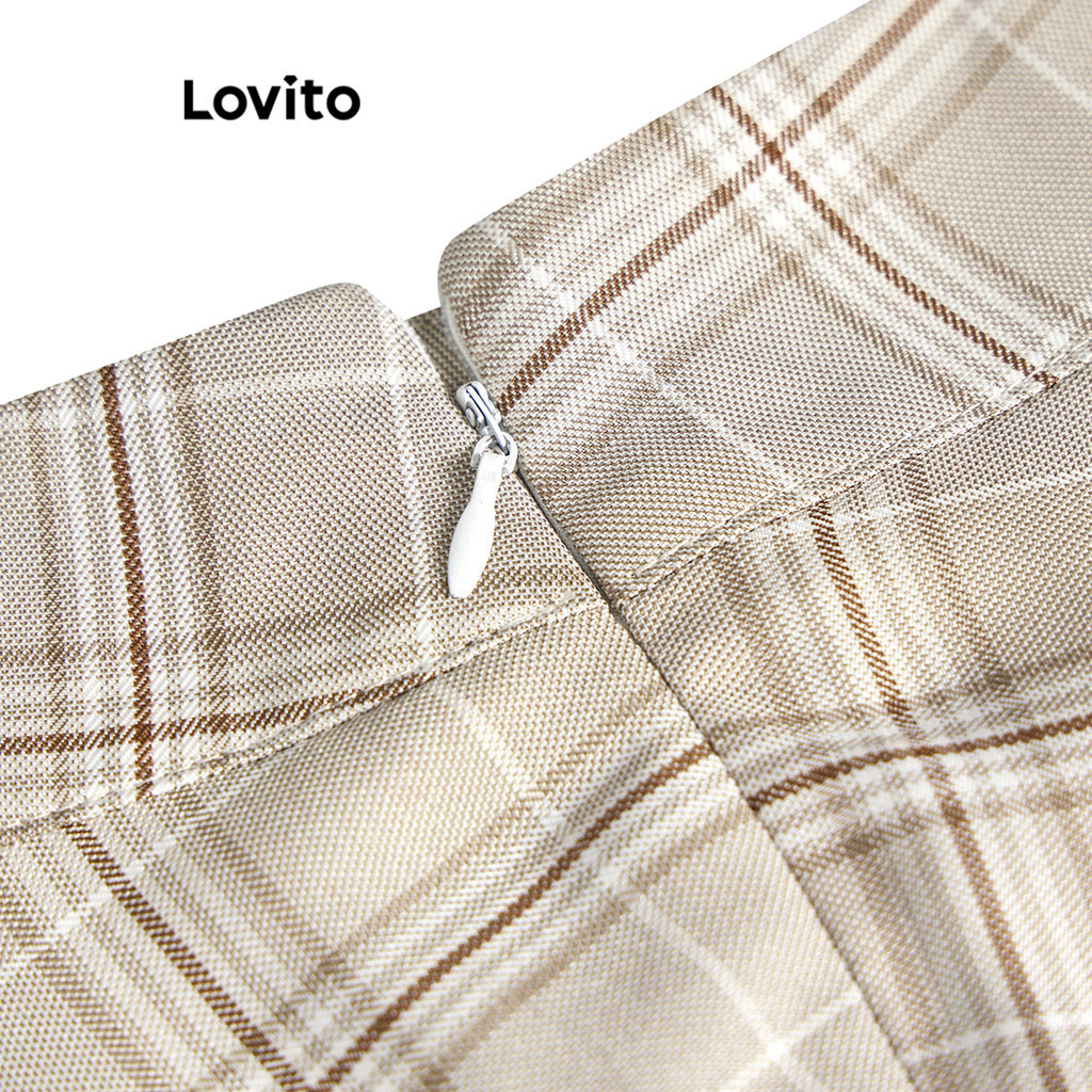 Lovito Chân Váy trơn có cúc phía trước có khóa kéo cho nữ l47ed090 (Màu Kaki)