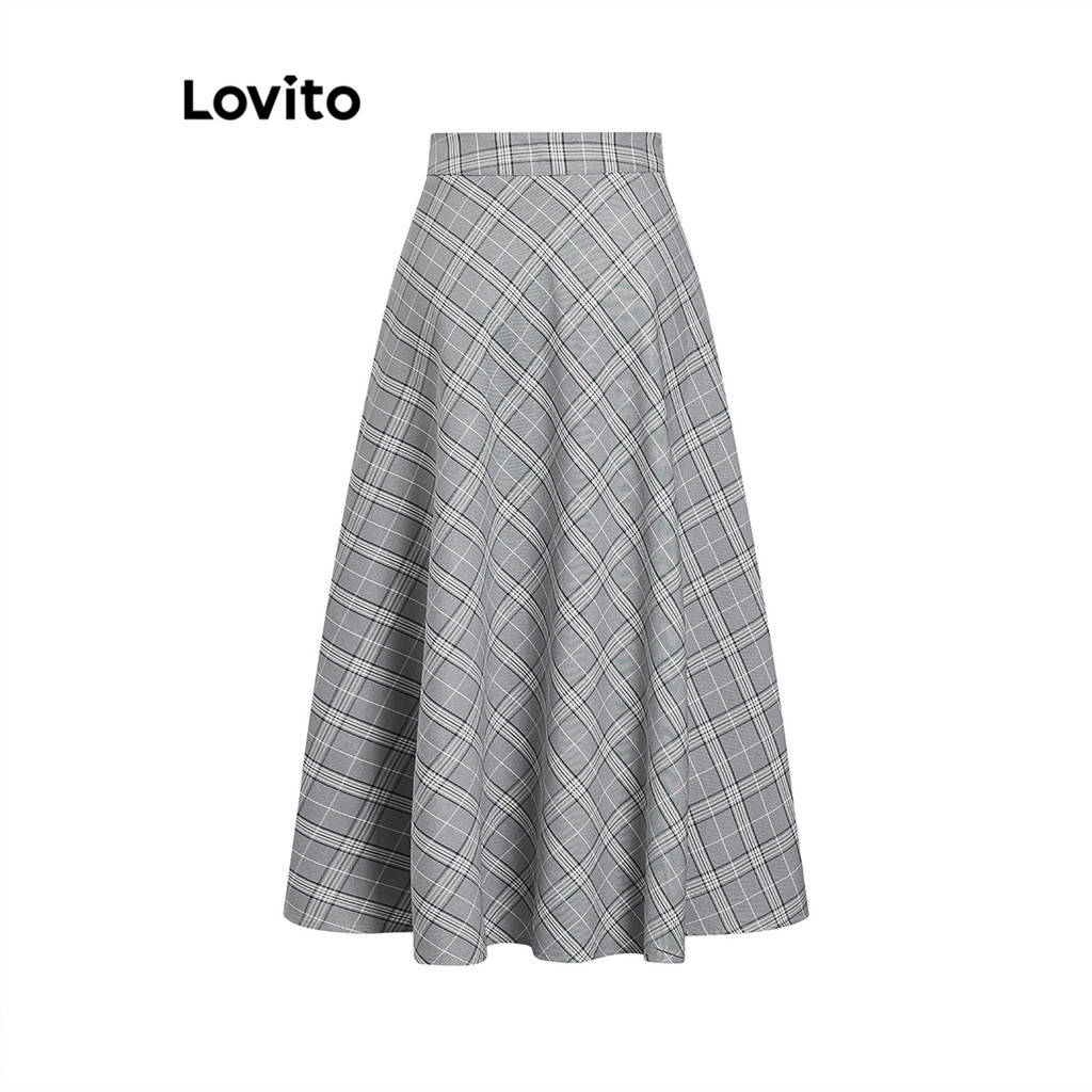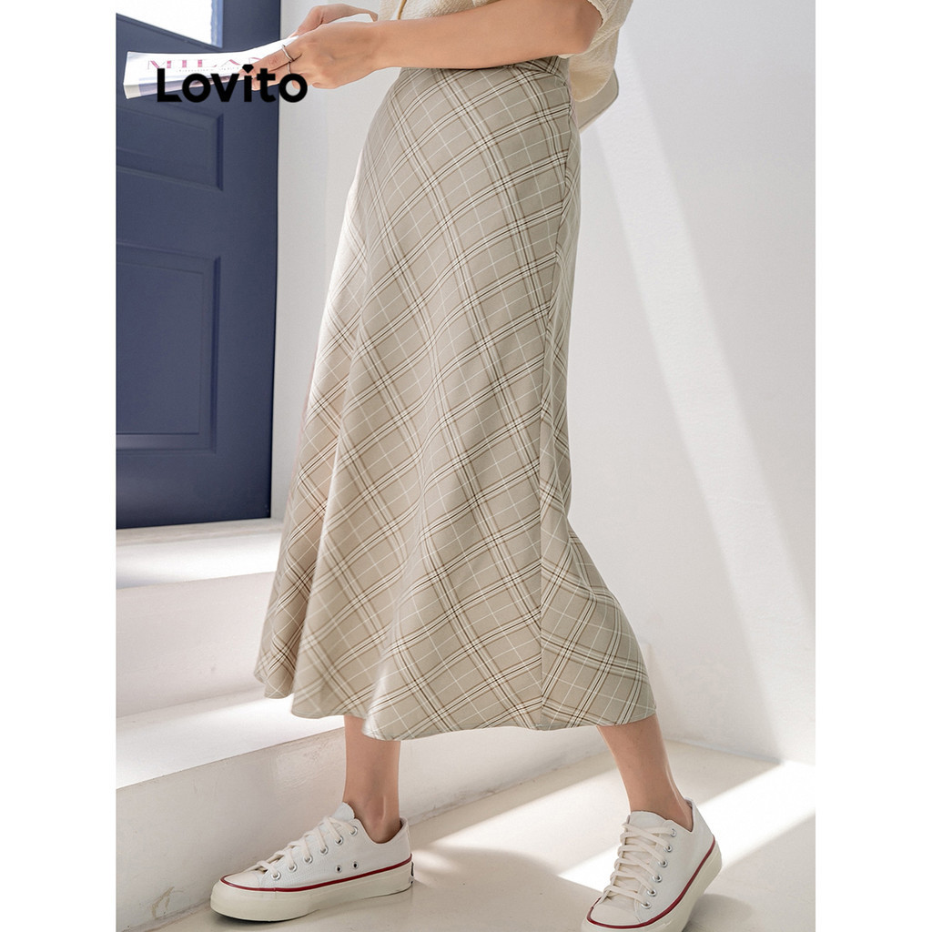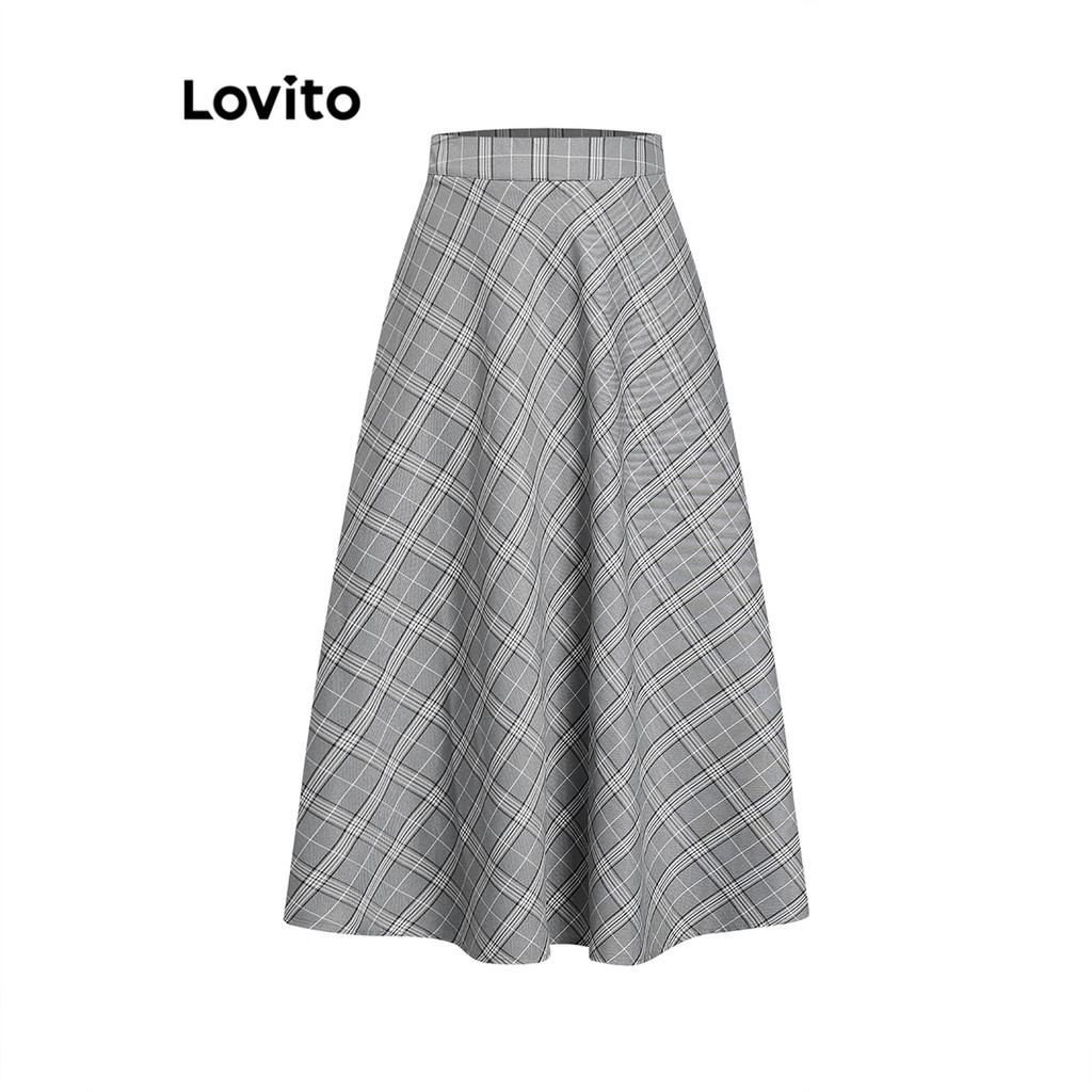Lovito váy maxi nam dáng chữ A Xếp Nếp kẻ ca rô thường ngày cho Nữ lne09142 (Nhiều màu)