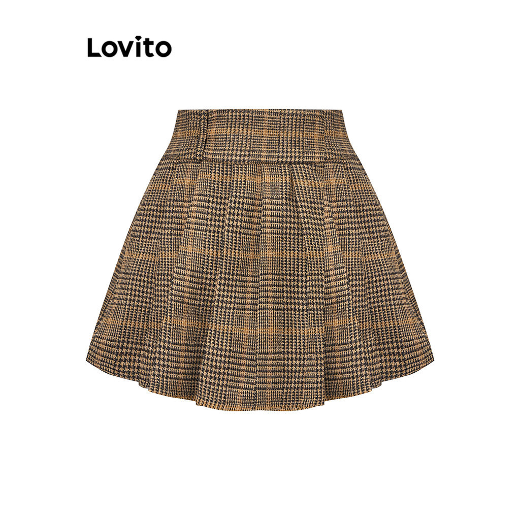 Lovito chân váy kẻ sọc có khóa kéo xếp li cho nữ l59ed089 (Nhiều màu)