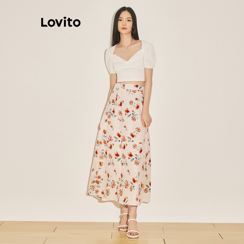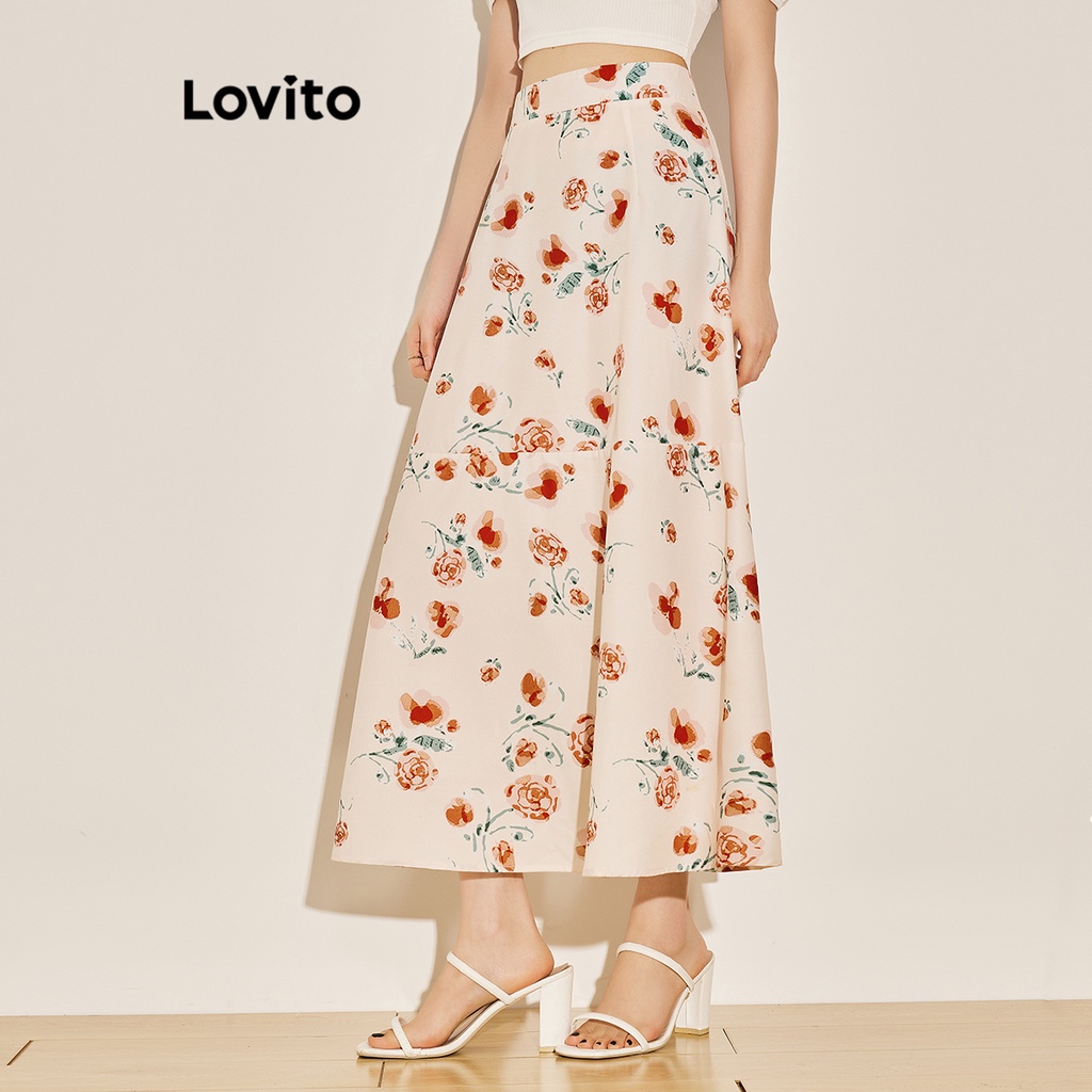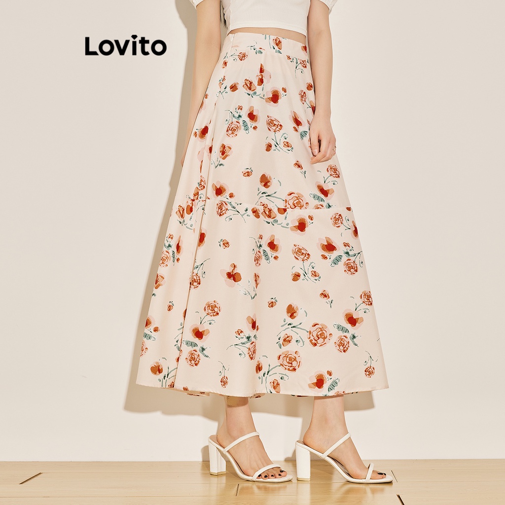 Lovito lne09166 Chân Váy Xếp Li Dài hoa thường ngày cho Nữ (Nhiều màu)