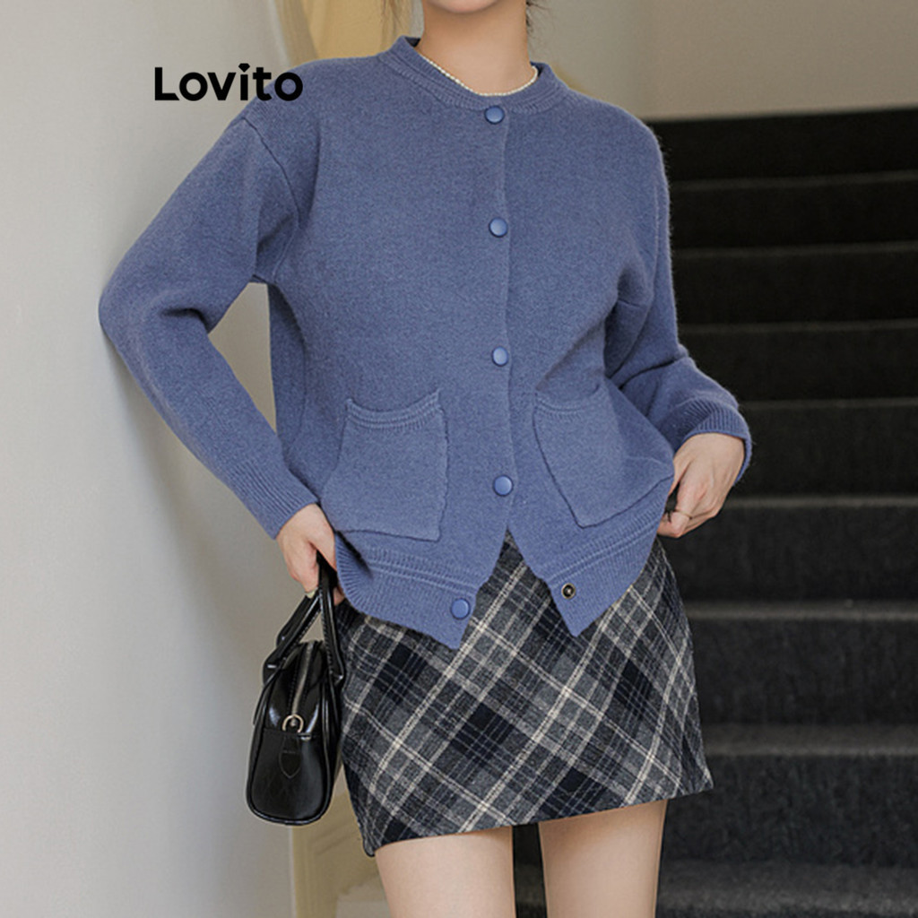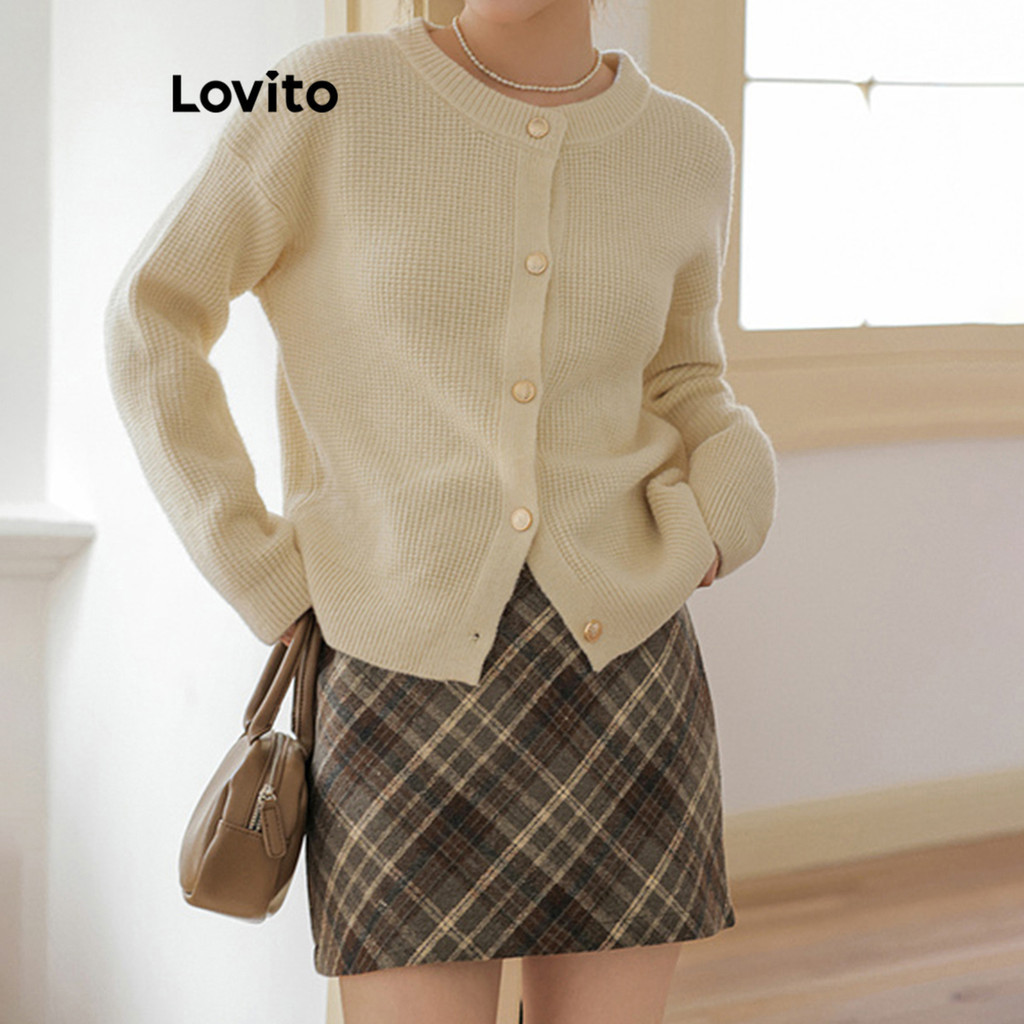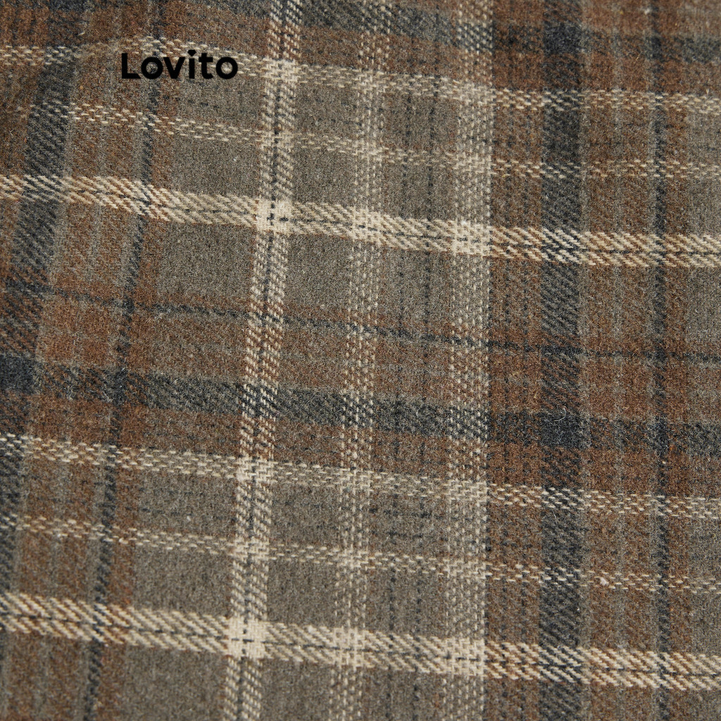 Lovito váy có cúc kẻ ca rô cạp cao thanh lịch cho nữ lbe01089 (Màu Đen)