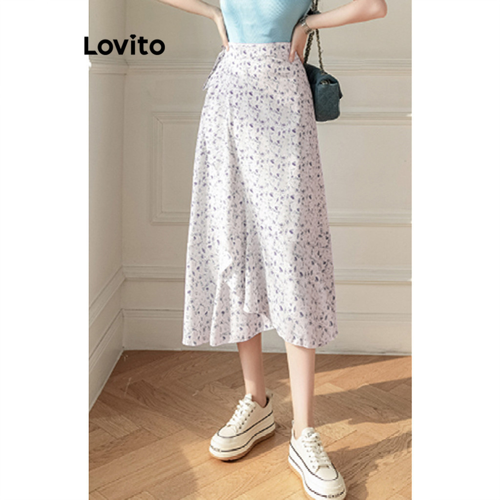 Lovito Váy thường ngày trơn viền bất đối xứng xếp li cho nữ l77ed088 (Nhiều màu)
