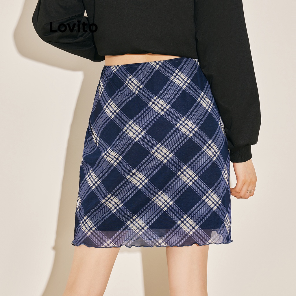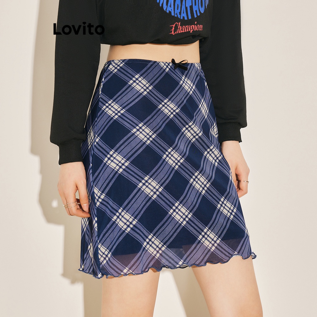 Lovito chân váy kẻ sọc có khóa kéo xếp li cho nữ l59ed089 (Nhiều màu)