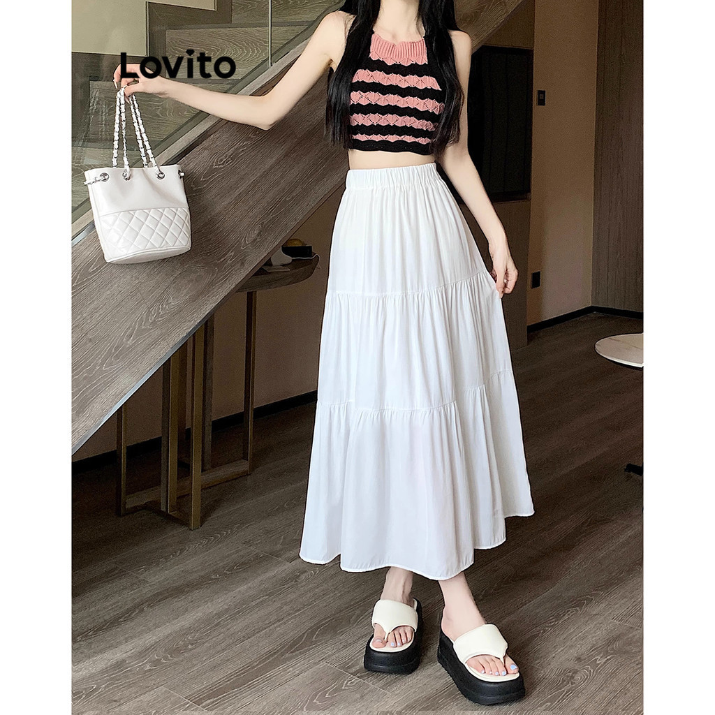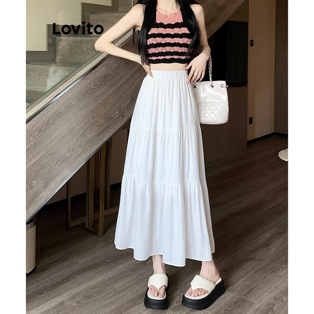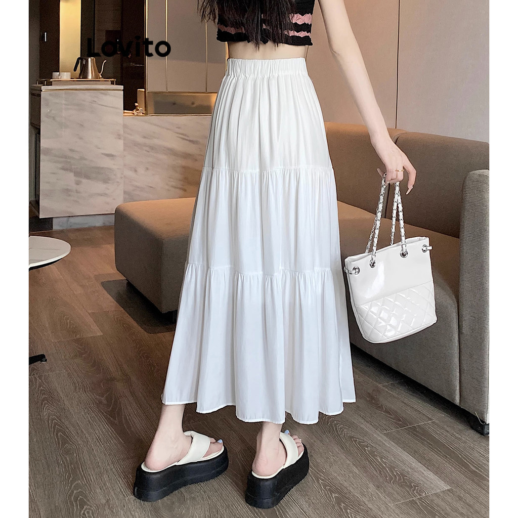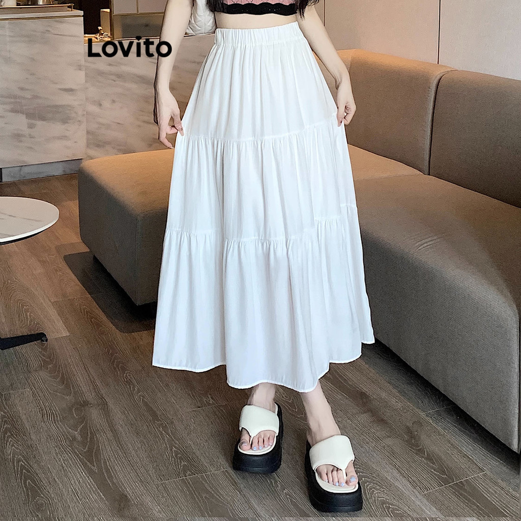 Lovito Chân Váy Chữ A Xếp Nếp Boho màu trơn cho nữ l52ad142 (Màu Trắng)